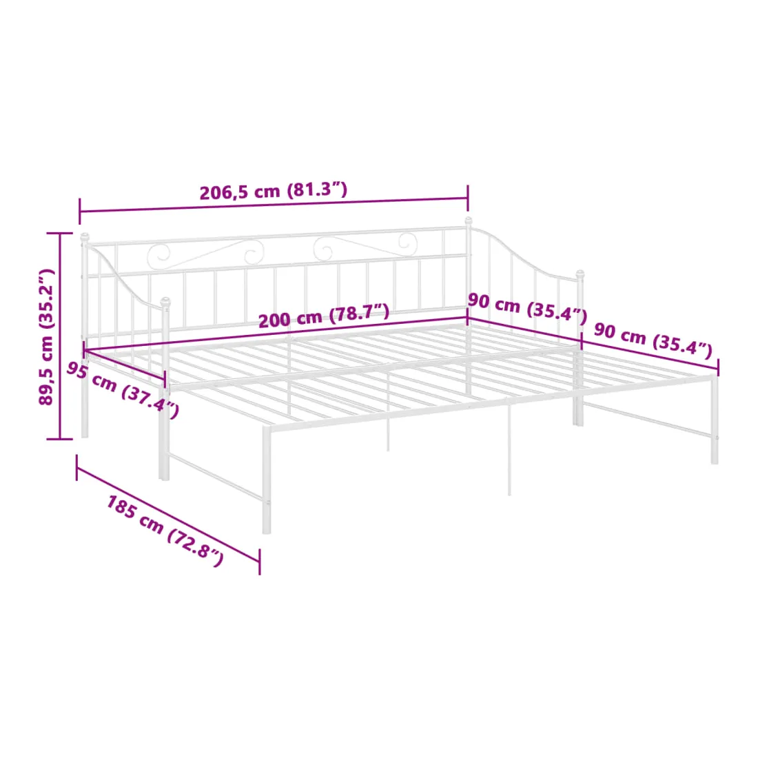 - Dimensions du lit (lorsqu'il n'est pas étendu) : 206,5 x 95 x 89,5 cm (L x l x H)
