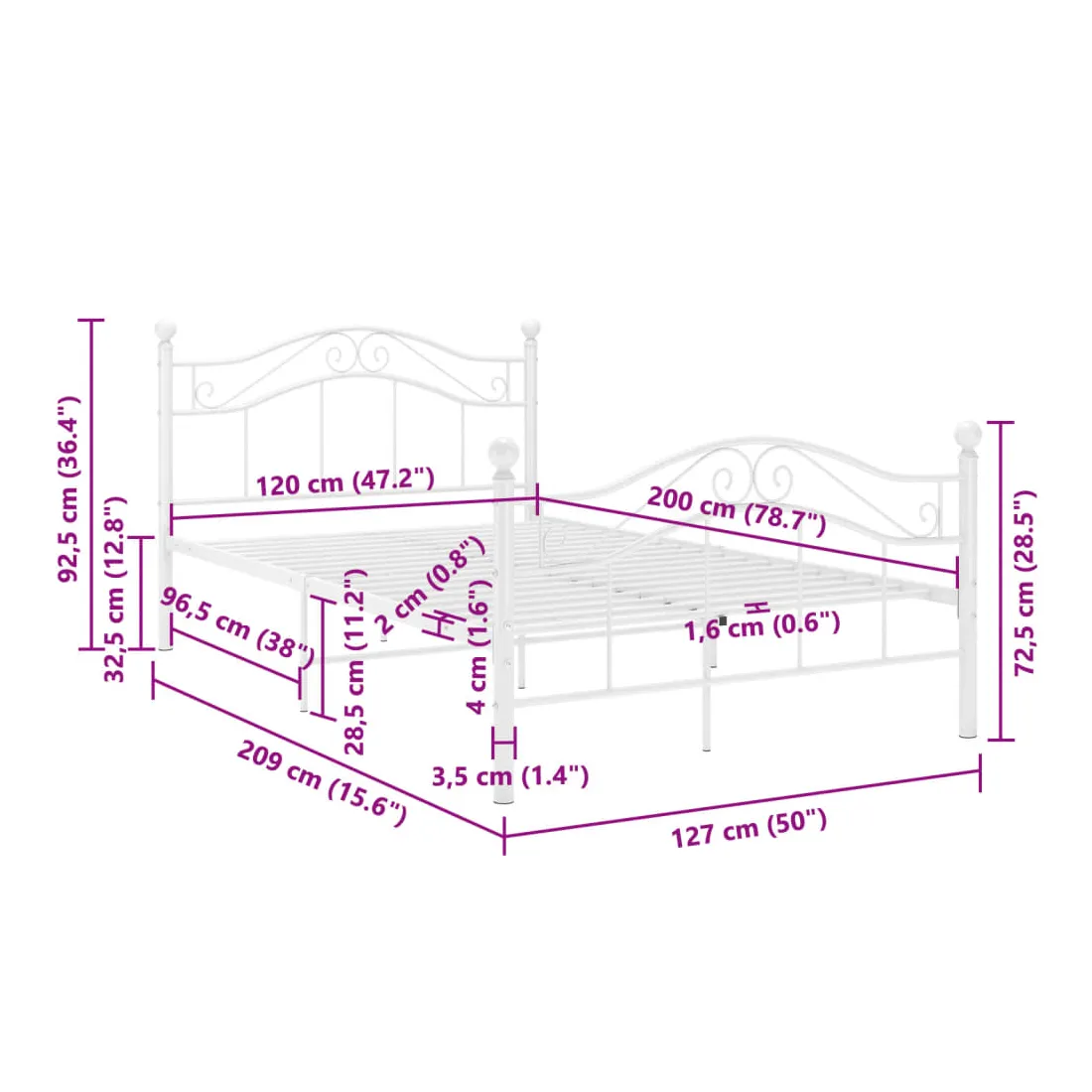 Profitez d’une bonne nuit de sommeil parfaite dans ce cadre de lit confortable ! Le lit double a une construction solide en métal enduit de poudre, ce qui le rend extrêmement robuste et durable. Les lattes robustes offrent le soutien et le confort nécessaires. Vous pouvez profiter de l'excellente expérience de sommeil chaque nuit dans ce lit ! Veuillez noter que la livraison comprend le cadre de lit uniquement. Les matelas ne sont pas inclus. Vous pouvez consulter notre boutique pour les matelas assortis.