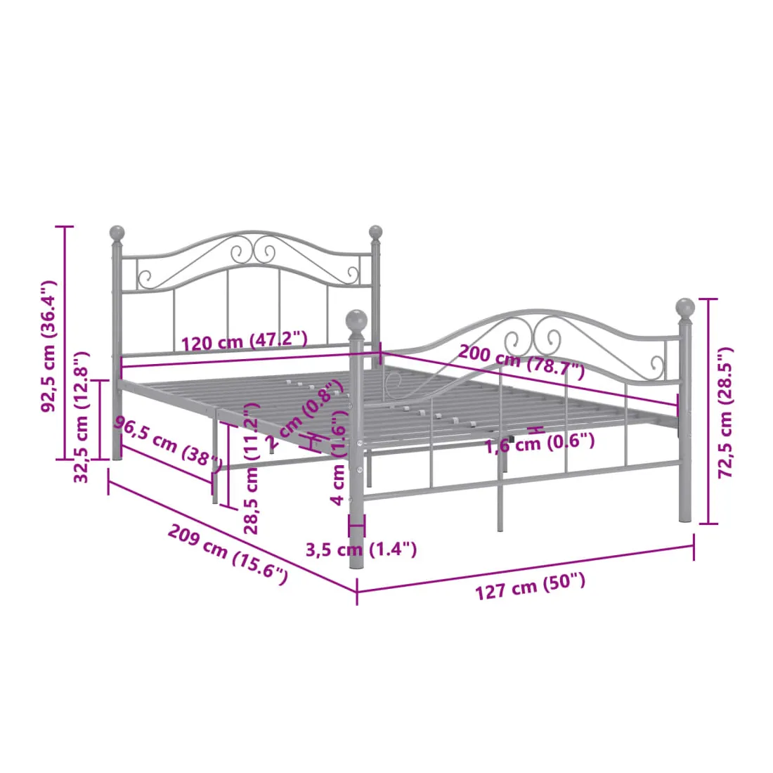 Profitez d’une bonne nuit de sommeil parfaite dans ce cadre de lit confortable ! Le lit double a une construction solide en métal enduit de poudre, ce qui le rend extrêmement robuste et durable. Les lattes robustes offrent le soutien et le confort nécessaires. Vous pouvez profiter de l'excellente expérience de sommeil chaque nuit dans ce lit ! Veuillez noter que la livraison comprend le cadre de lit uniquement. Les matelas ne sont pas inclus. Vous pouvez consulter notre boutique pour les matelas assortis.