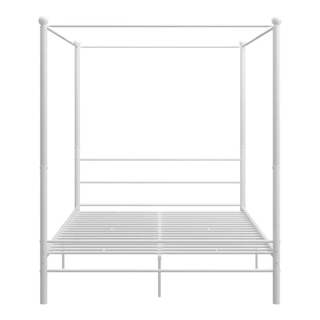 Ajoutez instantanément un goût élégant et classique à votre chambre à coucher grâce à notre cadre de lit à baldaquin en métal ! Structure robuste : le cadre en métal du cadre de lit ajoute un style industriel à votre intérieur tout en garantissant robustesse, stabilité et longévité.Intimité et ambiance personnalisables : le cadre supérieur intelligemment conçu vous invite à accrocher vos rideaux ou tentures préférés, ajoutant une touche d'intimité et vous permettant de créer une atmosphère personnalisée et glamour.Espace de rangement supplémentaire : pour votre confort, le lit d'appoint dispose également d'un espace supplémentaire en dessous pour ranger vos boîtes de rangement à l'abri des regards.Expérience de sommeil améliorée : cette conception soigneusement construite se concentre sur un environnement qui favorise le confort et un sommeil réparateur, parfait pour ceux qui recherchent un havre de paix. Bon à savoir :Un matelas n'est pas inclus avec ce lit. Nous offrons une sélection variée de matelas. Vous pouvez consulter notre boutique pour trouver un matelas assorti.