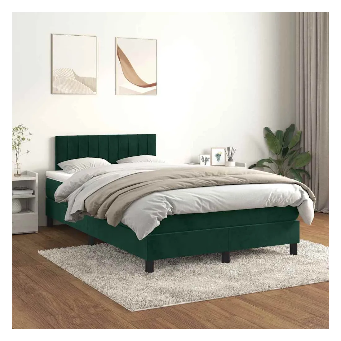 Utilisez ce lit à sommier pour profiter d'une nuit de sommeil réparatrice ! Il vous offre une relaxation maximale et un sommeil agréable. Velours doux : le velours est un tissu doux et luxueux qui se reconnaît à son tas dense de fibres uniformément coupées qui ont une touche lisse. Le tissu en velours présente un toucher doux distinctif, ce qui le rend confortable au toucher.Tête de lit pratique : la tête de lit est réglable en hauteur selon vos préférences. La tête de lit vous offre un excellent soutien du dos lorsque vous êtes assis dans votre lit pour lire ou regarder la télévision.Matelas à ressorts ensachés : le ressort ensaché individuel intégré est connu pour sa très haute qualité tout en assurant un haut niveau de durabilité et d'adaptabilité. Il peut absorber efficacement le bruit et les chocs causés par les sauts et les rotations.Support moyen-dur : ce matelas de lit offre une stabilité accrue et juste le niveau de fermeté sans sacrifier le confort. Il est donc idéal pour les personnes qui dorment sur le dos ou sur le ventre.Protège-matelas doux pour la peau : le protège-matelas est recouvert d'un tissu résistant et doux pour la peau, ce qui le rend souple et confortable. Bon à savoir :Pour des raisons d'hygiène, le matelas ne peut pas être retourné si l'emballage est retiré ou ouvert.