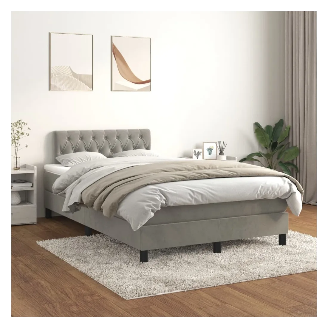 Utilisez ce lit à sommier pour profiter d'une nuit de sommeil réparatrice ! Il vous offre une relaxation maximale et un sommeil agréable. Velours doux : le velours est un tissu doux et luxueux qui se reconnaît à son tas dense de fibres uniformément coupées qui ont une touche lisse. Le tissu en velours présente un toucher doux distinctif, ce qui le rend confortable au toucher.Tête de lit pratique : la tête de lit est réglable en hauteur selon vos préférences. La tête de lit vous offre un excellent soutien du dos lorsque vous êtes assis dans votre lit pour lire ou regarder la télévision.Matelas à ressorts ensachés : le ressort ensaché individuel intégré est connu pour sa très haute qualité tout en assurant un haut niveau de durabilité et d'adaptabilité. Il peut absorber efficacement le bruit et les chocs causés par les sauts et les rotations.Support moyen-dur : ce matelas de lit offre une stabilité accrue et juste le niveau de fermeté sans sacrifier le confort. Il est donc idéal pour les personnes qui dorment sur le dos ou sur le ventre.Protège-matelas doux pour la peau : le protège-matelas est recouvert d'un tissu résistant et doux pour la peau, ce qui le rend souple et confortable. Bon à savoir :Pour des raisons d'hygiène, le matelas ne peut pas être retourné si l'emballage est retiré ou ouvert.