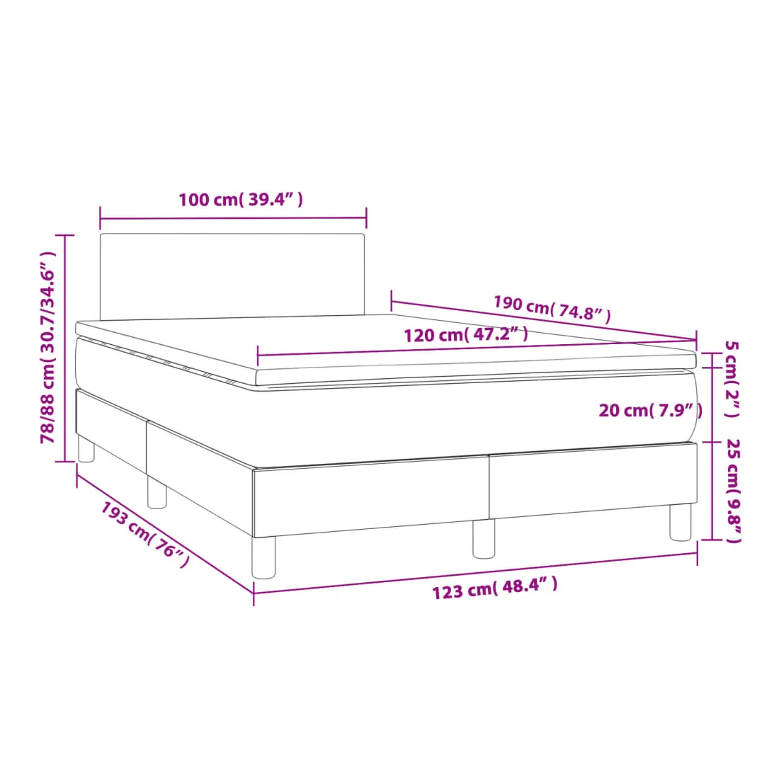 • Dimensions : 120 x 190 x 20 cm (l x L x H)