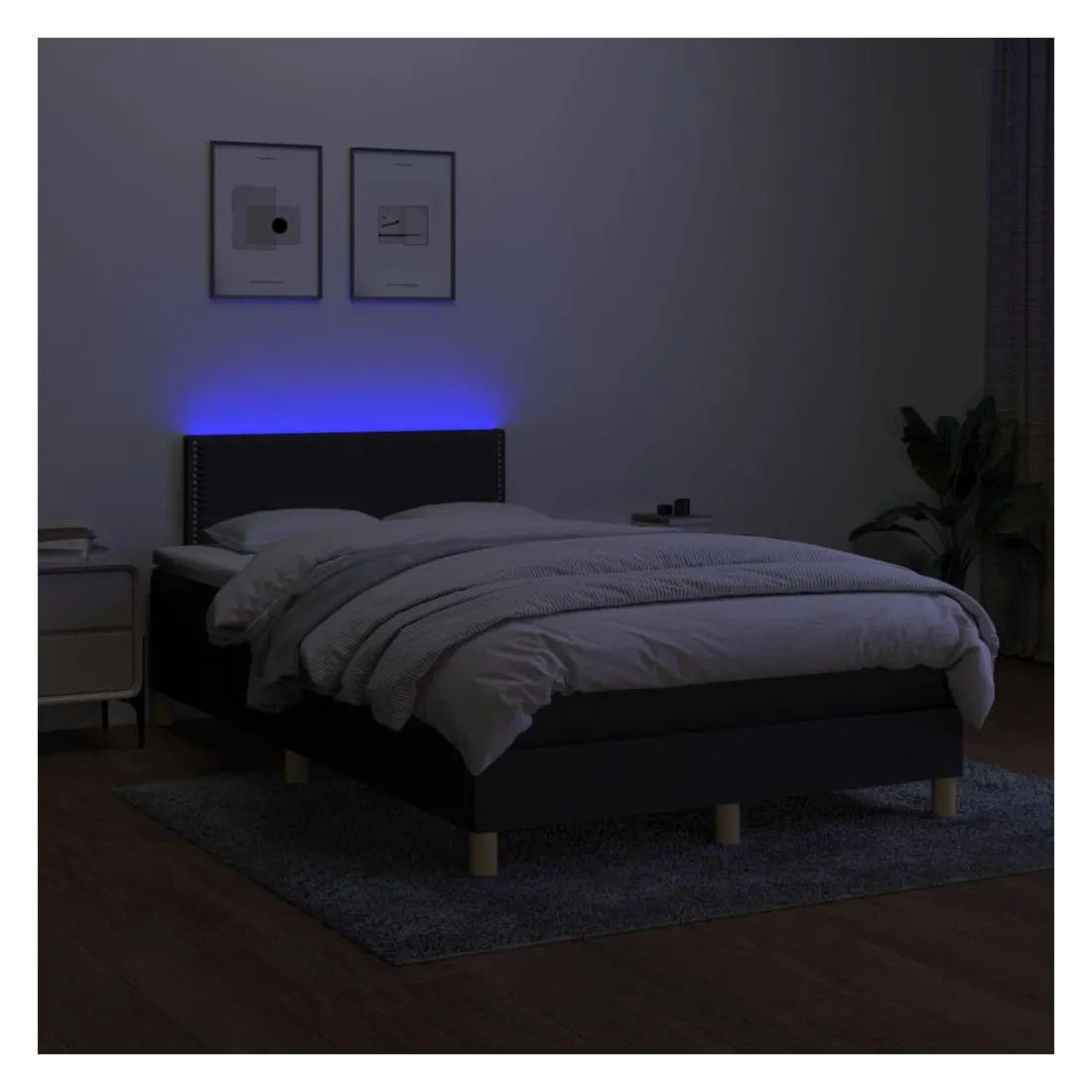 Utilisez ce sommier tapissier avec matelas et LED pour profiter d'un sommeil réparateur ! C'est le point central de votre chambre à coucher. Tissu durable : le tissu présente un aspect simple et épuré, et il est respirant et durable.Tête de lit pratique : la tête de lit est réglable en hauteur selon vos préférences. La tête de lit vous offre un excellent soutien du dos lorsque vous êtes assis dans votre lit pour lire ou regarder la télévision.Bande LED colorée : apportez de l'éclairage dans l'obscurité avec des lumières LED colorées !Matelas à ressorts ensachés : le ressort ensaché individuel intégré est connu pour sa très haute qualité tout en assurant un haut niveau de durabilité et d'adaptabilité. Il peut absorber efficacement le bruit et les chocs causés par les sauts et les rotations.Protège-matelas doux pour la peau : le protège-matelas est recouvert d'un tissu résistant et doux pour la peau, ce qui le rend souple et confortable. Bon à savoir :Pour des raisons d'hygiène, le matelas ne peut pas être retourné si l'emballage est retiré ou ouvert.Seule la partie avec un symbole de ciseaux peut être coupée et seule la partie avec l'USB continuera à fonctionner comme avant.Ce produit est doté d'un connecteur USB qui nécessite une source d'alimentation USB de 5V certifiée (non incluse).