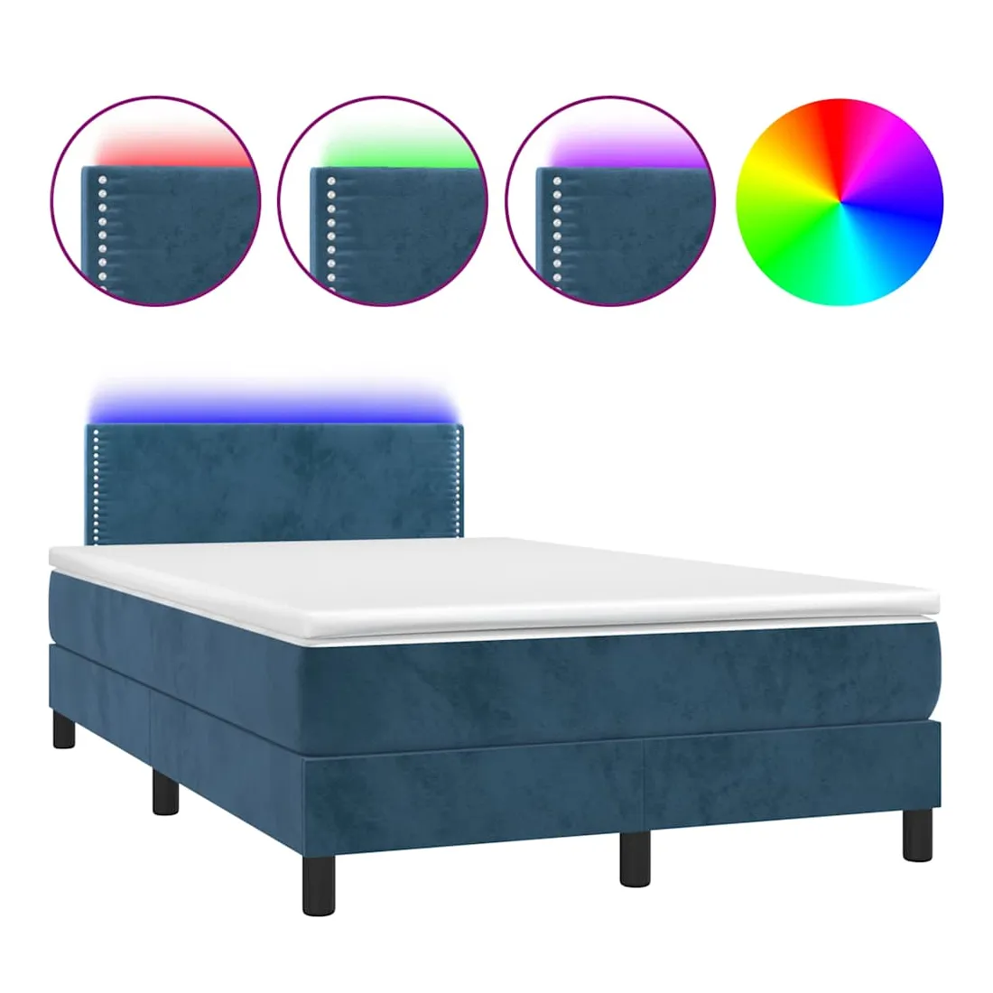 Utilisez ce sommier tapissier avec matelas et LED pour profiter d'un sommeil réparateur ! C'est le point central de votre chambre à coucher. Velours doux : le velours est un tissu doux et luxueux qui se reconnaît à son tas dense de fibres uniformément coupées qui ont une touche lisse. Le tissu en velours présente un toucher doux distinctif, ce qui le rend confortable au toucher.Tête de lit pratique : la tête de lit est réglable en hauteur selon vos préférences. La tête de lit vous offre un excellent soutien du dos lorsque vous êtes assis dans votre lit pour lire ou regarder la télévision.Bande LED colorée : apportez de l'éclairage dans l'obscurité avec des lumières LED colorées !Matelas à ressorts ensachés : le ressort ensaché individuel intégré est connu pour sa très haute qualité tout en assurant un haut niveau de durabilité et d'adaptabilité. Il peut absorber efficacement le bruit et les chocs causés par les sauts et les rotations.Protège-matelas doux pour la peau : le protège-matelas est recouvert d'un tissu résistant et doux pour la peau, ce qui le rend souple et confortable. Bon à savoir :Pour des raisons d'hygiène, le matelas ne peut pas être retourné si l'emballage est retiré ou ouvert.Seule la partie avec un symbole de ciseaux peut être coupée et seule la partie avec l'USB continuera à fonctionner comme avant.Ce produit est doté d'un connecteur USB qui nécessite une source d'alimentation USB de 5V certifiée (non incluse).