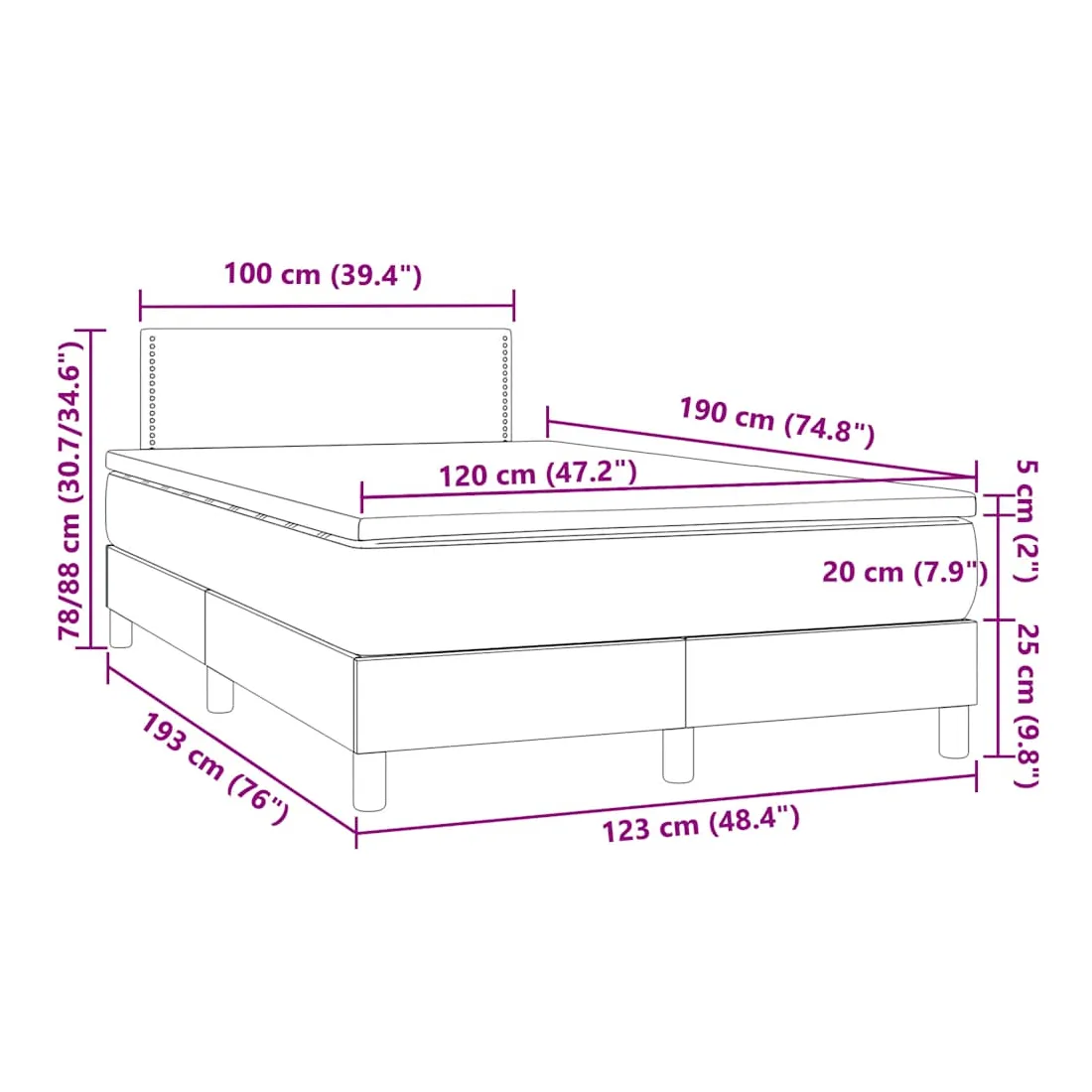 - Dimensions : 120 x 190 x 20 cm (l x L x H)