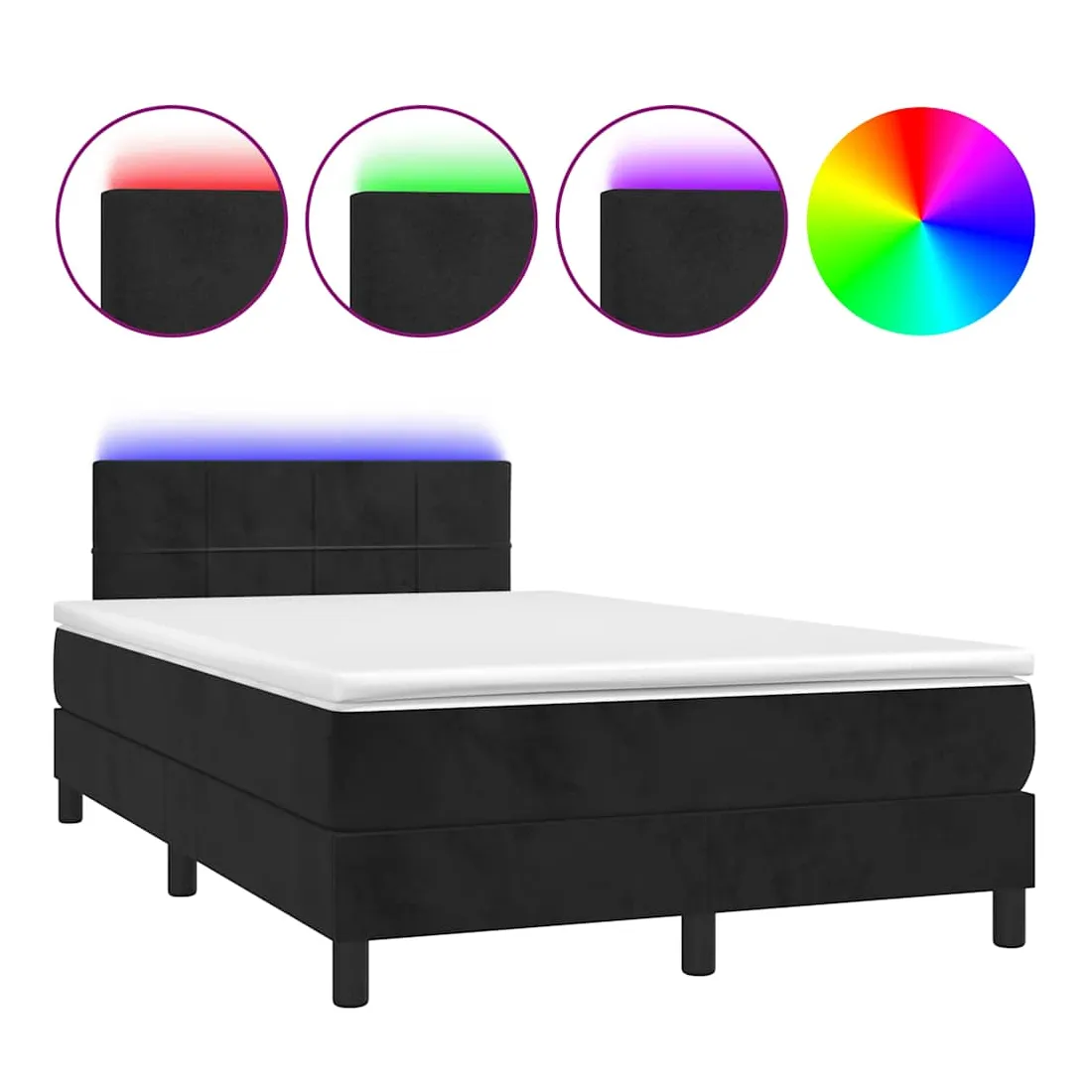 Utilisez ce sommier tapissier avec matelas et LED pour profiter d'un sommeil réparateur ! C'est le point central de votre chambre à coucher. Velours doux : le velours est un tissu doux et luxueux qui se reconnaît à son tas dense de fibres uniformément coupées qui ont une touche lisse. Le tissu en velours présente un toucher doux distinctif, ce qui le rend confortable au toucher.Tête de lit pratique : la tête de lit est réglable en hauteur selon vos préférences. La tête de lit vous offre un excellent soutien du dos lorsque vous êtes assis dans votre lit pour lire ou regarder la télévision.Bande LED colorée : apportez de l'éclairage dans l'obscurité avec des lumières LED colorées !Matelas à ressorts ensachés : le ressort ensaché individuel intégré est connu pour sa très haute qualité tout en assurant un haut niveau de durabilité et d'adaptabilité. Il peut absorber efficacement le bruit et les chocs causés par les sauts et les rotations.Protège-matelas doux pour la peau : le protège-matelas est recouvert d'un tissu résistant et doux pour la peau, ce qui le rend souple et confortable. Bon à savoir :Pour des raisons d'hygiène, le matelas ne peut pas être retourné si l'emballage est retiré ou ouvert.Seule la partie avec un symbole de ciseaux peut être coupée et seule la partie avec l'USB continuera à fonctionner comme avant.Ce produit est doté d'un connecteur USB qui nécessite une source d'alimentation USB de 5V certifiée (non incluse).
