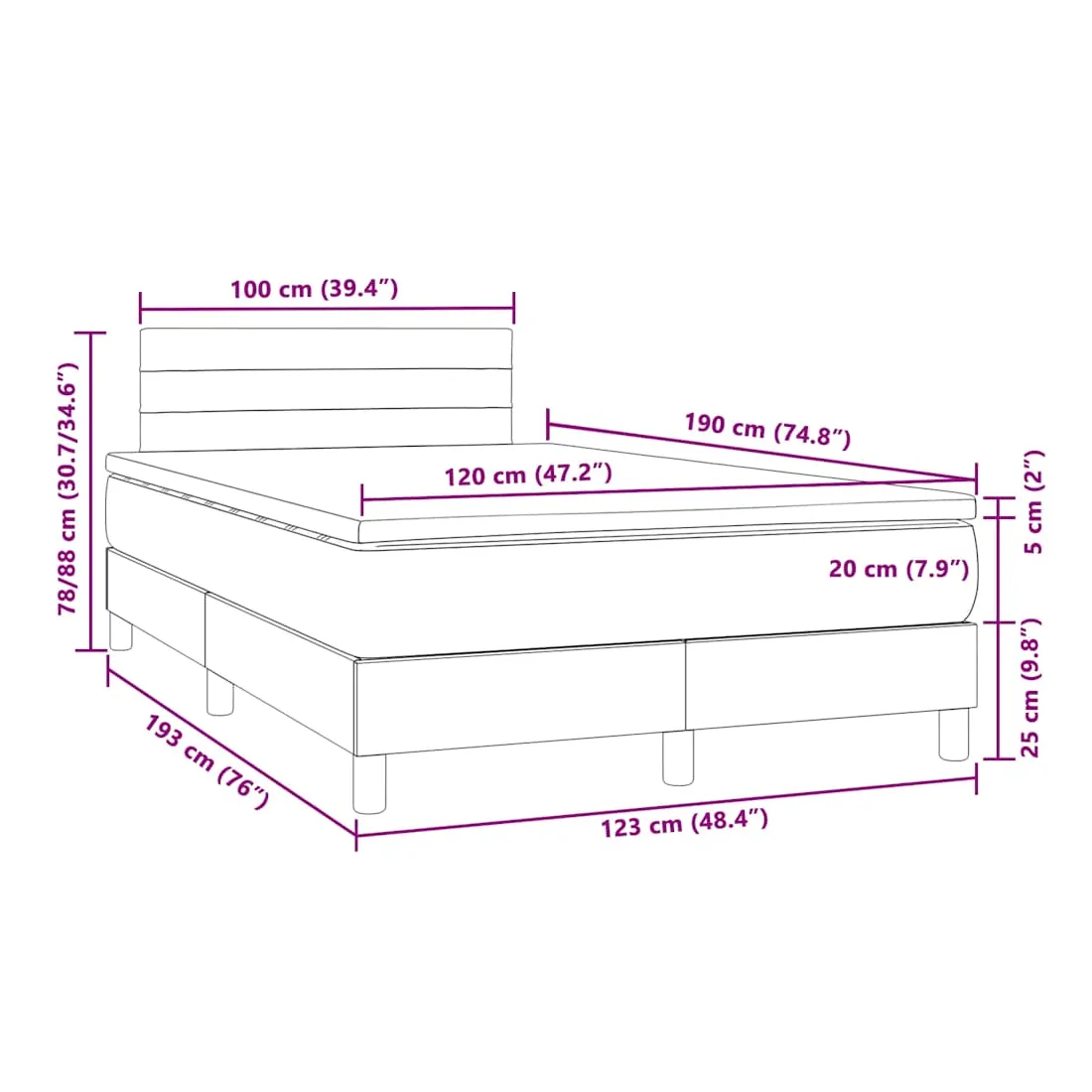 • Dimensions : 120 x 190 x 20 cm (l x L x H)