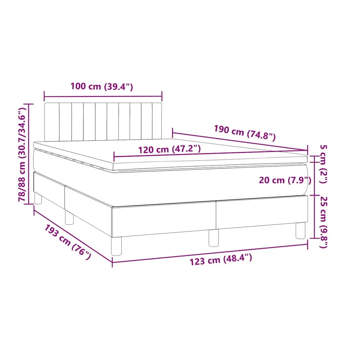 - Dimensions : 120 x 190 x 20 cm (l x L x H)