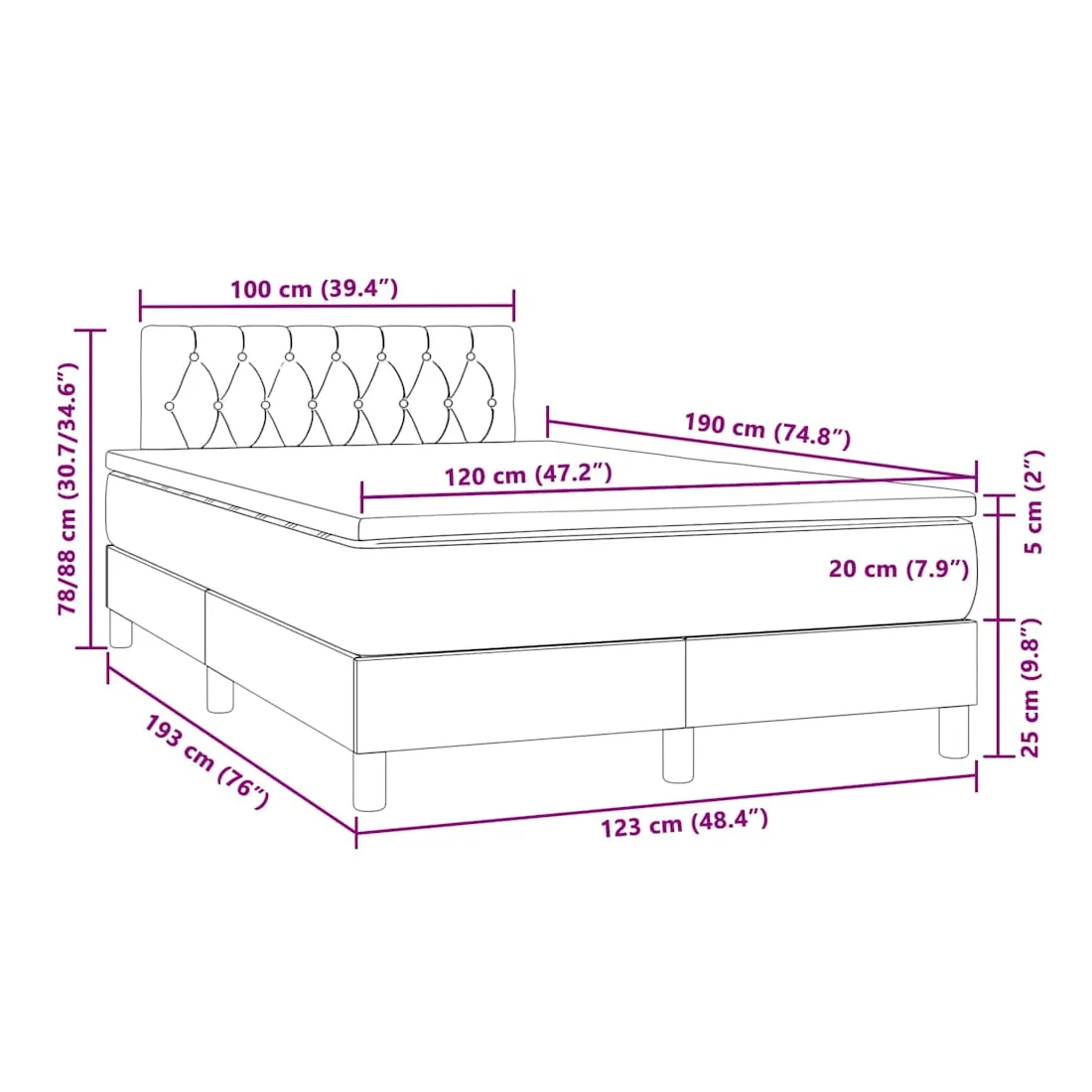 - Dimensions : 120 x 190 x 20 cm (l x L x H)