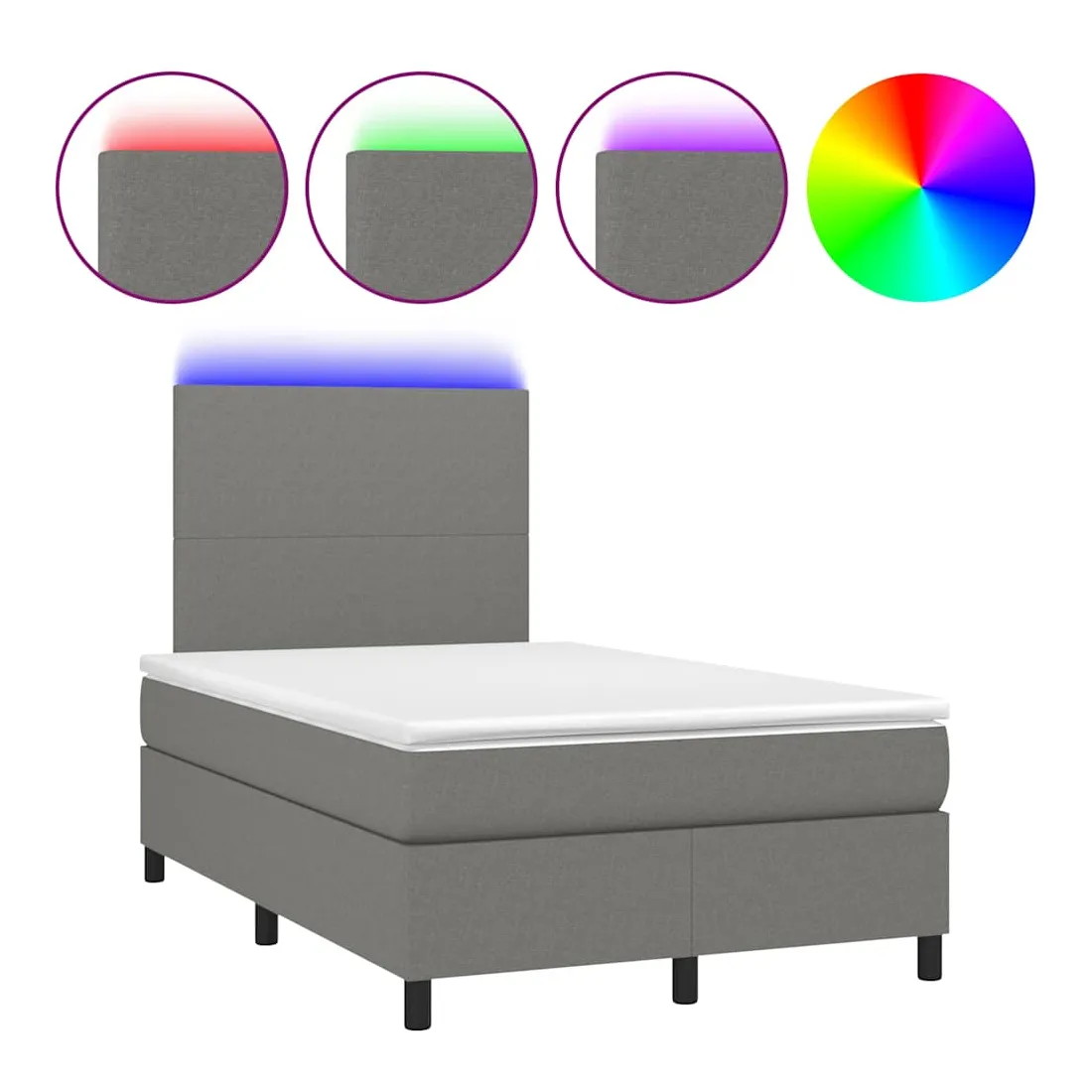 Utilisez ce sommier tapissier avec matelas et LED pour profiter d'un sommeil réparateur ! C'est le point central de votre chambre à coucher. Tissu durable : le tissu présente un aspect simple et épuré, et il est respirant et durable.Tête de lit pratique : la tête de lit est réglable en hauteur selon vos préférences. La tête de lit vous offre un excellent soutien du dos lorsque vous êtes assis dans votre lit pour lire ou regarder la télévision.Bande LED colorée : apportez de l'éclairage dans l'obscurité avec des lumières LED colorées !Matelas à ressorts ensachés : le ressort ensaché individuel intégré est connu pour sa très haute qualité tout en assurant un haut niveau de durabilité et d'adaptabilité. Il peut absorber efficacement le bruit et les chocs causés par les sauts et les rotations.Protège-matelas doux pour la peau : le protège-matelas est recouvert d'un tissu résistant et doux pour la peau, ce qui le rend souple et confortable. Bon à savoir :Pour des raisons d'hygiène, le matelas ne peut pas être retourné si l'emballage est retiré ou ouvert.Seule la partie avec un symbole de ciseaux peut être coupée et seule la partie avec l'USB continuera à fonctionner comme avant.Ce produit est doté d'un connecteur USB qui nécessite une source d'alimentation USB de 5V certifiée (non incluse).
