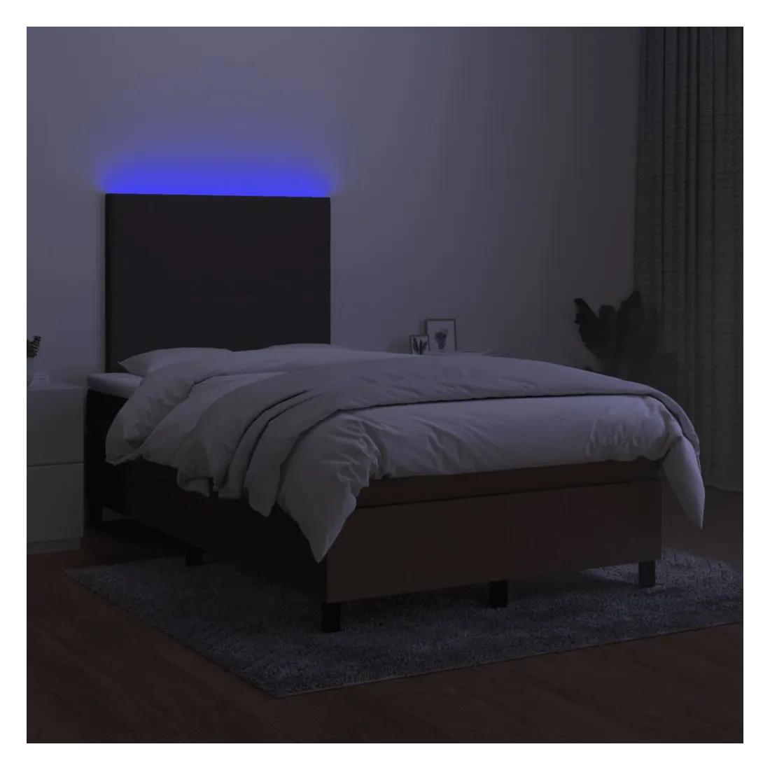 Sommier à lattes de lit matelas et LED marron foncé 120x190 cm