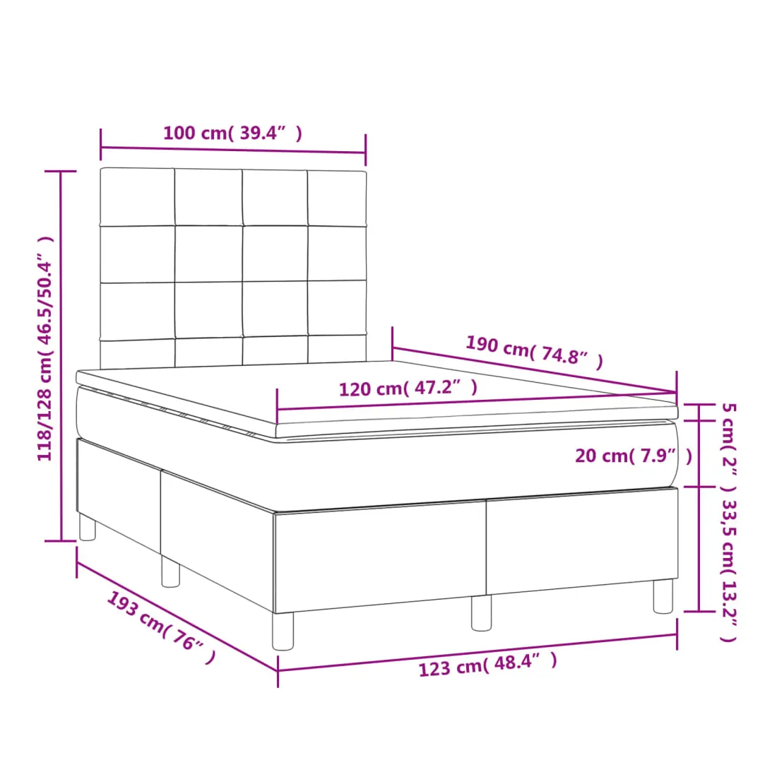 - Dimensions : 120 x 190 x 20 cm (l x L x H)