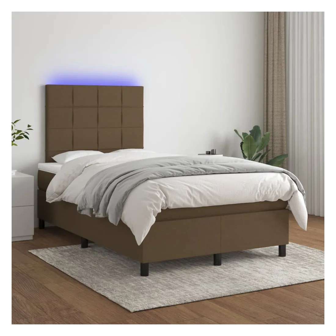 Sommier à lattes de lit matelas et LED marron foncé 120x190 cm