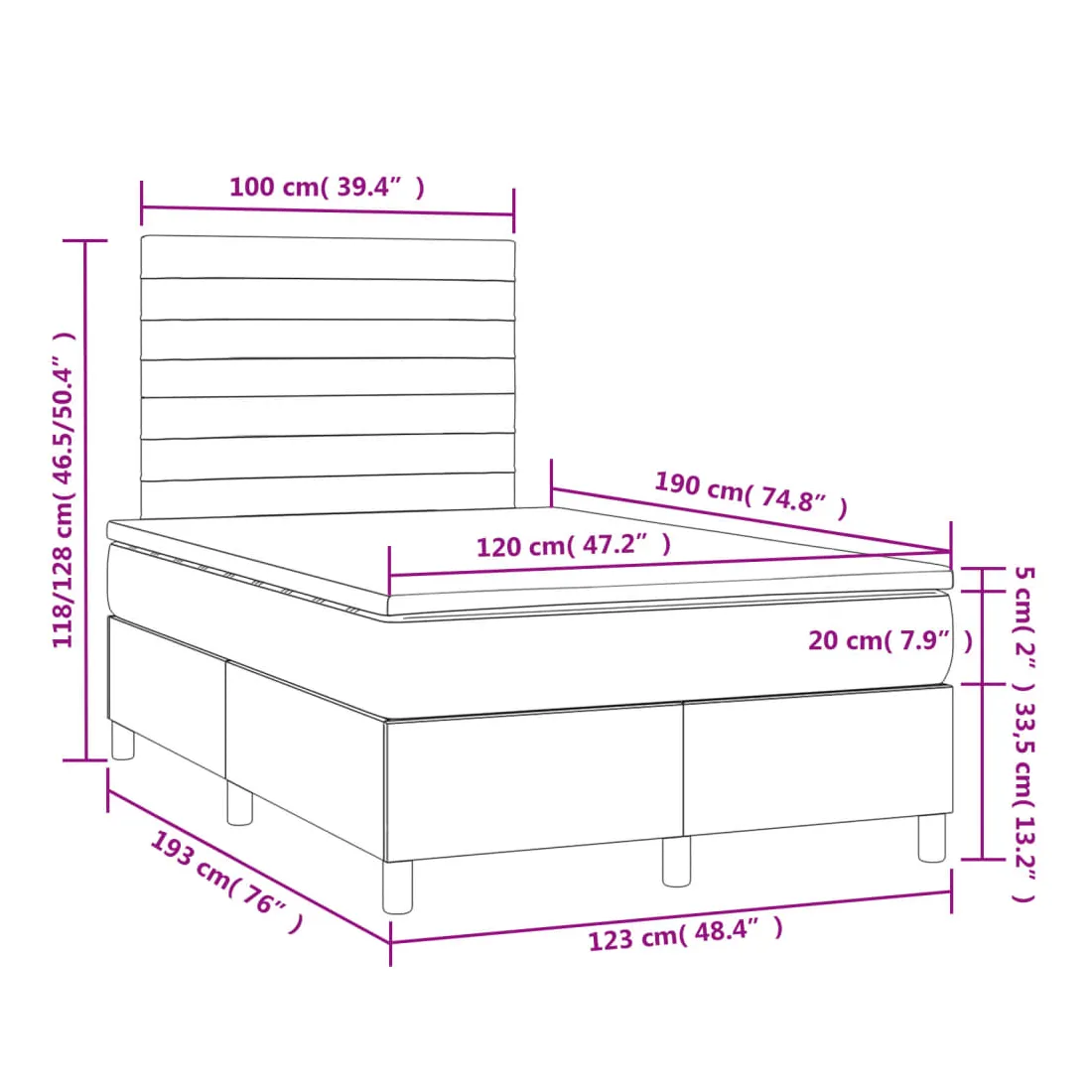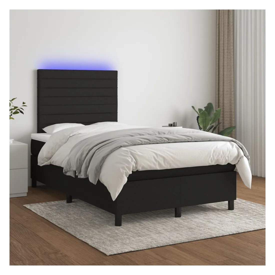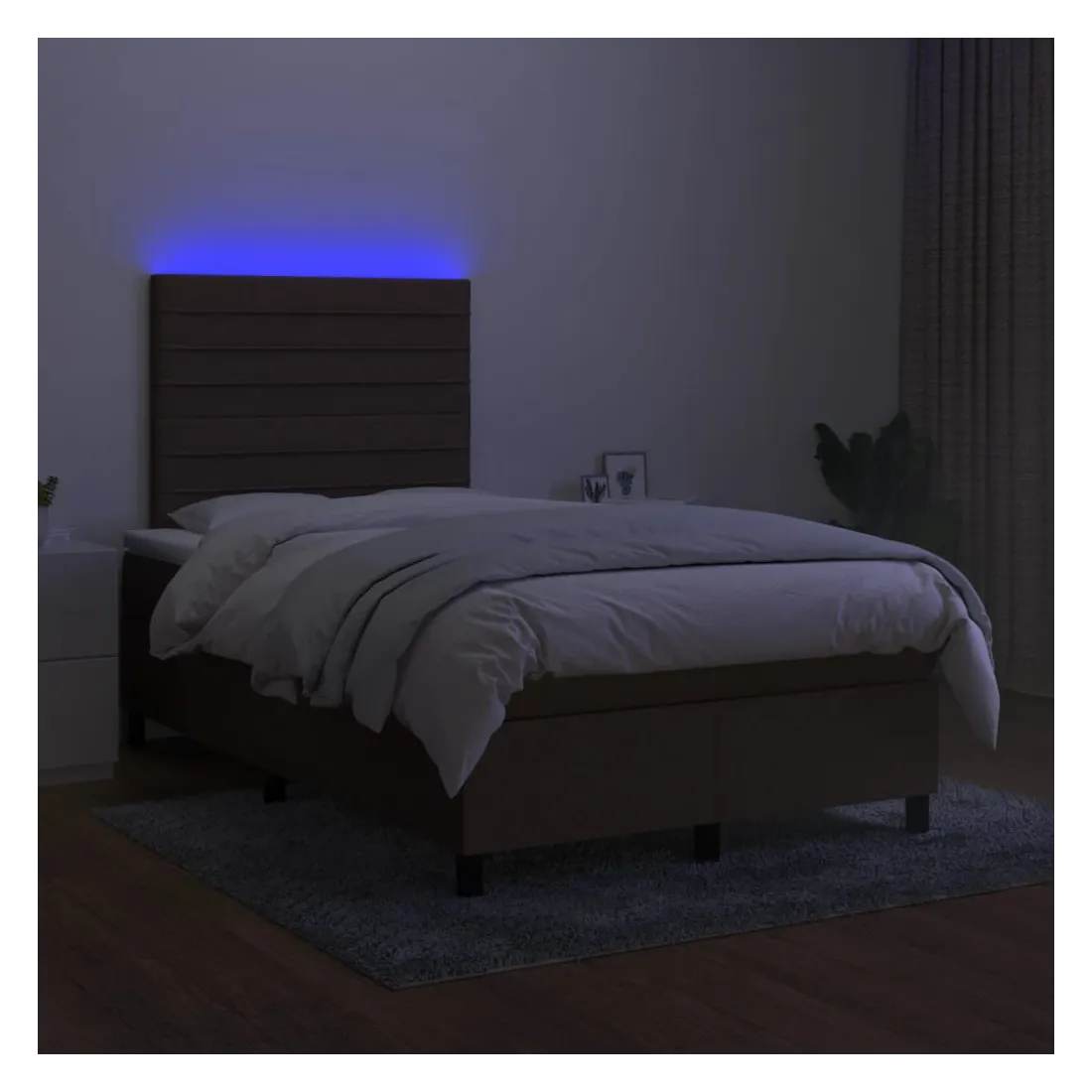 Utilisez ce sommier tapissier avec matelas et LED pour profiter d'un sommeil réparateur ! C'est le point central de votre chambre à coucher. Tissu durable : le tissu présente un aspect simple et épuré, et il est respirant et durable.Tête de lit pratique : la tête de lit est réglable en hauteur selon vos préférences. La tête de lit vous offre un excellent soutien du dos lorsque vous êtes assis dans votre lit pour lire ou regarder la télévision.Bande LED colorée : apportez de l'éclairage dans l'obscurité avec des lumières LED colorées !Matelas à ressorts ensachés : le ressort ensaché individuel intégré est connu pour sa très haute qualité tout en assurant un haut niveau de durabilité et d'adaptabilité. Il peut absorber efficacement le bruit et les chocs causés par les sauts et les rotations.Protège-matelas doux pour la peau : le protège-matelas est recouvert d'un tissu résistant et doux pour la peau, ce qui le rend souple et confortable. Bon à savoir :Pour des raisons d'hygiène, le matelas ne peut pas être retourné si l'emballage est retiré ou ouvert.Seule la partie avec un symbole de ciseaux peut être coupée et seule la partie avec l'USB continuera à fonctionner comme avant.Ce produit est doté d'un connecteur USB qui nécessite une source d'alimentation USB de 5V certifiée (non incluse).