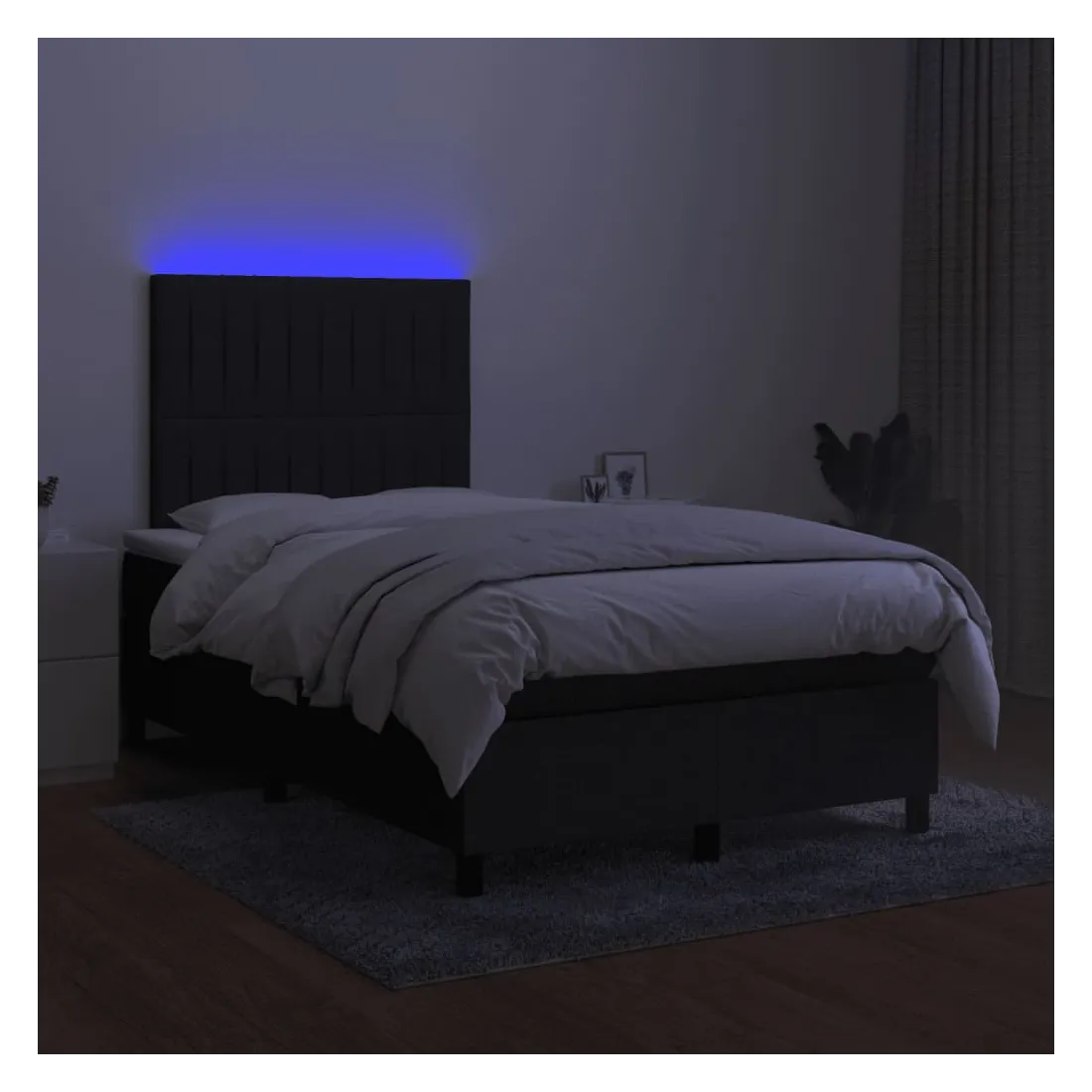 Sommier à lattes de lit matelas et LED noir 120x190 cm tissu
