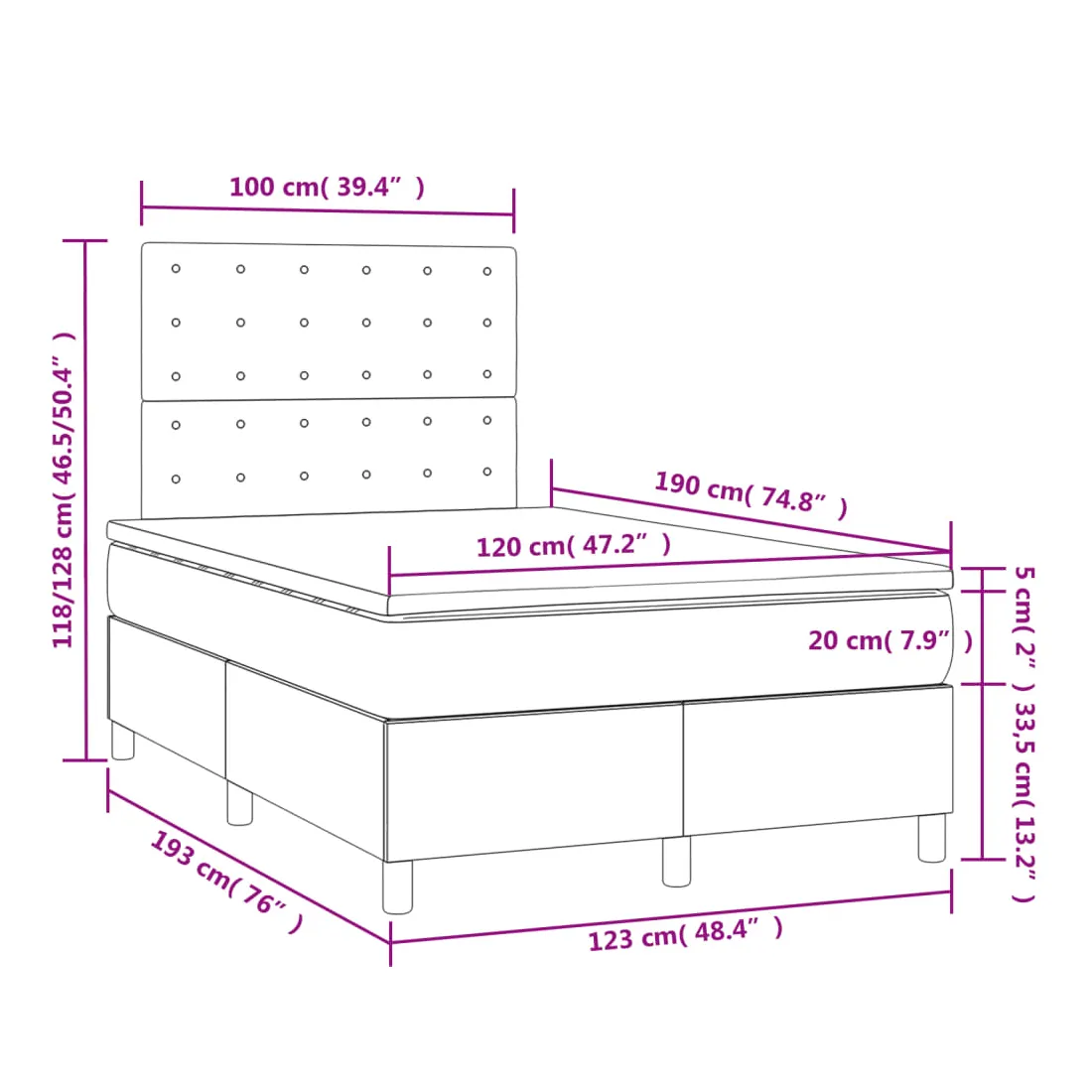 • Dimensions : 120 x 190 x 20 cm (l x L x H)