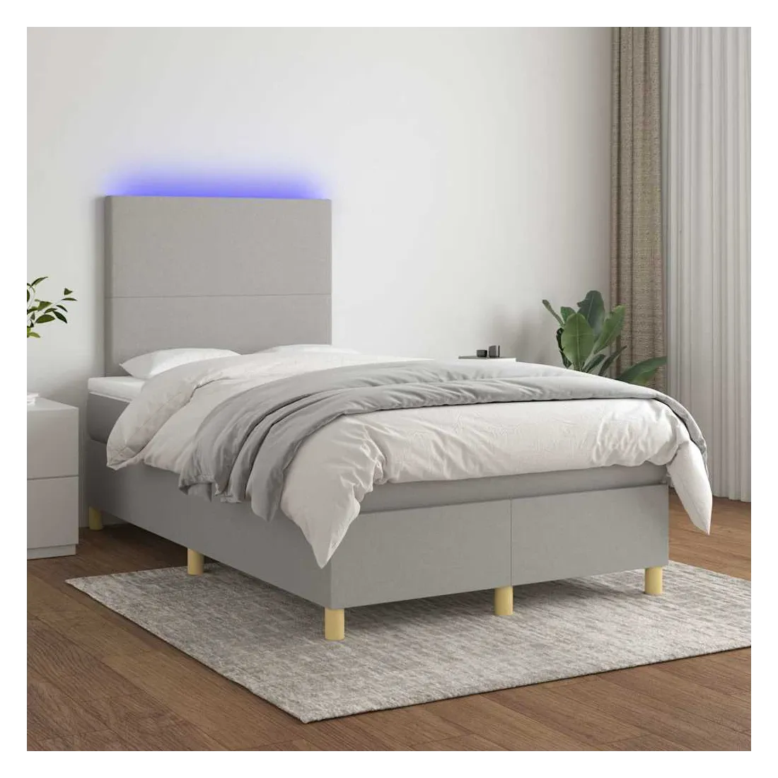Sommier à lattes de lit matelas LED gris clair 120x190 cm tissu