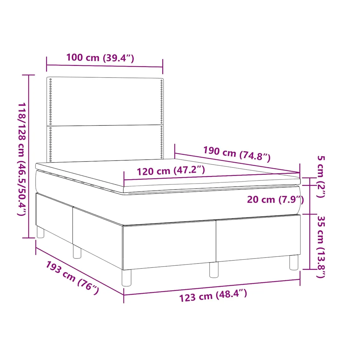 • Dimensions : 120 x 190 x 20 cm (l x L x H)