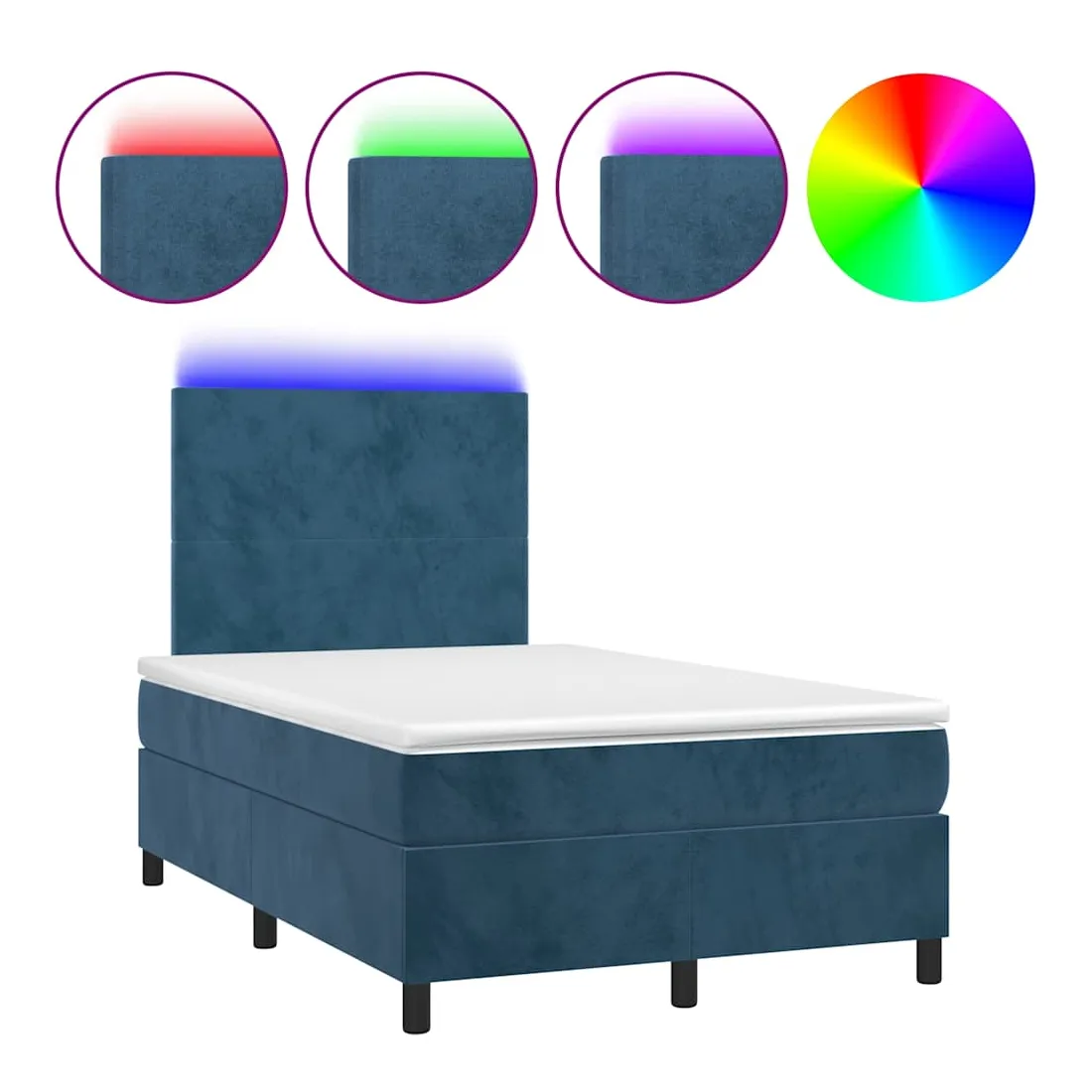 Utilisez ce sommier tapissier avec matelas et LED pour profiter d'un sommeil réparateur ! C'est le point central de votre chambre à coucher. Velours doux : le velours est un tissu doux et luxueux qui se reconnaît à son tas dense de fibres uniformément coupées qui ont une touche lisse. Le tissu en velours présente un toucher doux distinctif, ce qui le rend confortable au toucher.Tête de lit pratique : la tête de lit est réglable en hauteur selon vos préférences. La tête de lit vous offre un excellent soutien du dos lorsque vous êtes assis dans votre lit pour lire ou regarder la télévision.Bande LED colorée : apportez de l'éclairage dans l'obscurité avec des lumières LED colorées !Matelas à ressorts ensachés : le ressort ensaché individuel intégré est connu pour sa très haute qualité tout en assurant un haut niveau de durabilité et d'adaptabilité. Il peut absorber efficacement le bruit et les chocs causés par les sauts et les rotations.Protège-matelas doux pour la peau : le protège-matelas est recouvert d'un tissu résistant et doux pour la peau, ce qui le rend souple et confortable. Bon à savoir :Pour des raisons d'hygiène, le matelas ne peut pas être retourné si l'emballage est retiré ou ouvert.Seule la partie avec un symbole de ciseaux peut être coupée et seule la partie avec l'USB continuera à fonctionner comme avant.Ce produit est doté d'un connecteur USB qui nécessite une source d'alimentation USB de 5V certifiée (non incluse).