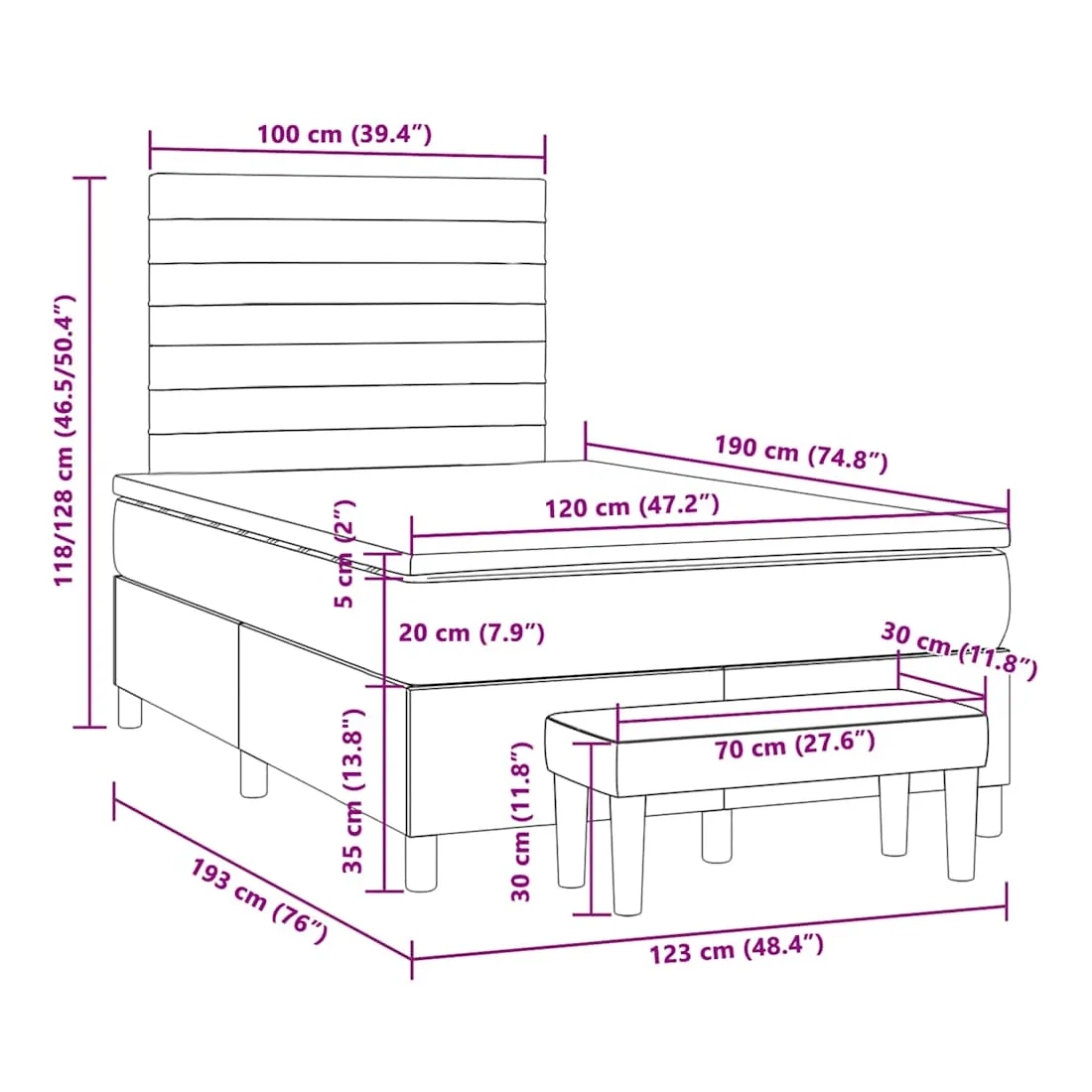Utilisez ce lit à sommier pour profiter d'une nuit de sommeil réparatrice ! Il vous offre une relaxation maximale et un sommeil agréable. Tissu durable : le tissu présente un aspect simple et épuré, et il est respirant et durable.Tête de lit pratique : la tête de lit est réglable en hauteur selon vos préférences. La tête de lit vous offre un excellent soutien du dos lorsque vous êtes assis dans votre lit pour lire ou regarder la télévision.Matelas à ressorts ensachés : le ressort ensaché individuel intégré est connu pour sa très haute qualité tout en assurant un haut niveau de durabilité et d'adaptabilité. Il peut absorber efficacement le bruit et les chocs causés par les sauts et les rotations.Support moyen-dur : ce matelas de lit offre une stabilité accrue et juste le niveau de fermeté sans sacrifier le confort. Il est donc idéal pour les personnes qui dorment sur le dos ou sur le ventre.Protège-matelas doux pour la peau : le protège-matelas est recouvert d'un tissu résistant et doux pour la peau, ce qui le rend souple et confortable.Banc multifonctionnel : ce banc peut servir de siège supplémentaire dans votre maison. Il peut également être utilisé comme banc de bout de lit. Bon à savoir :Pour des raisons d'hygiène, le matelas ne peut pas être retourné si l'emballage est retiré ou ouvert.