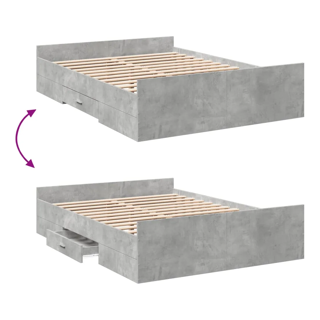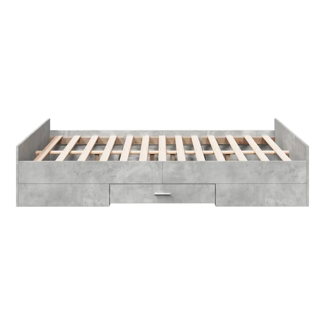 Cadre de lit avec tiroirs sans matelas gris béton 135x190 cm