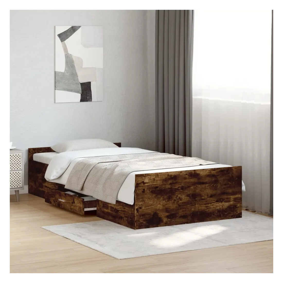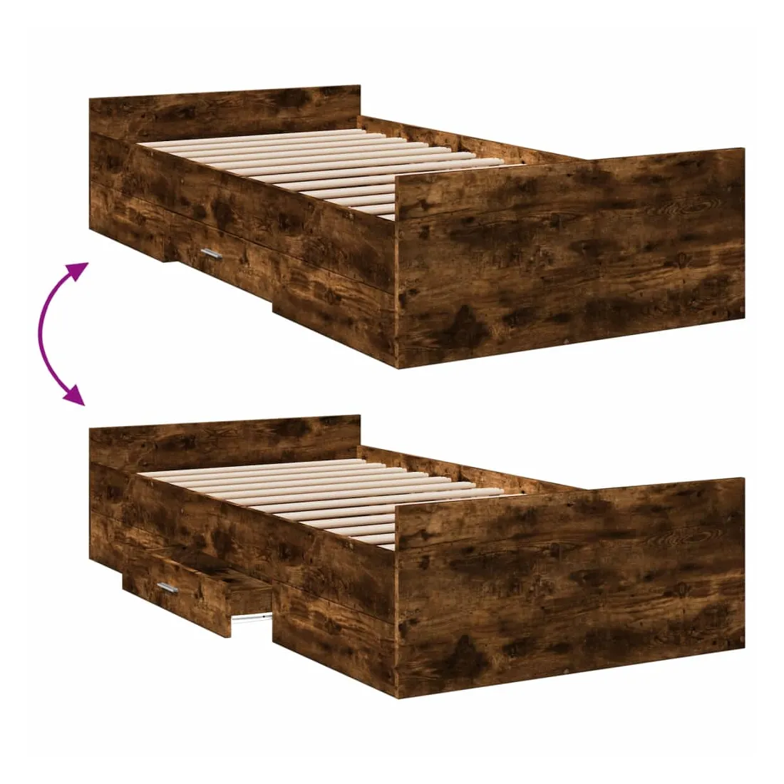 Cadre de lit avec tiroirs sans matelas chêne fumé 90x200 cm
