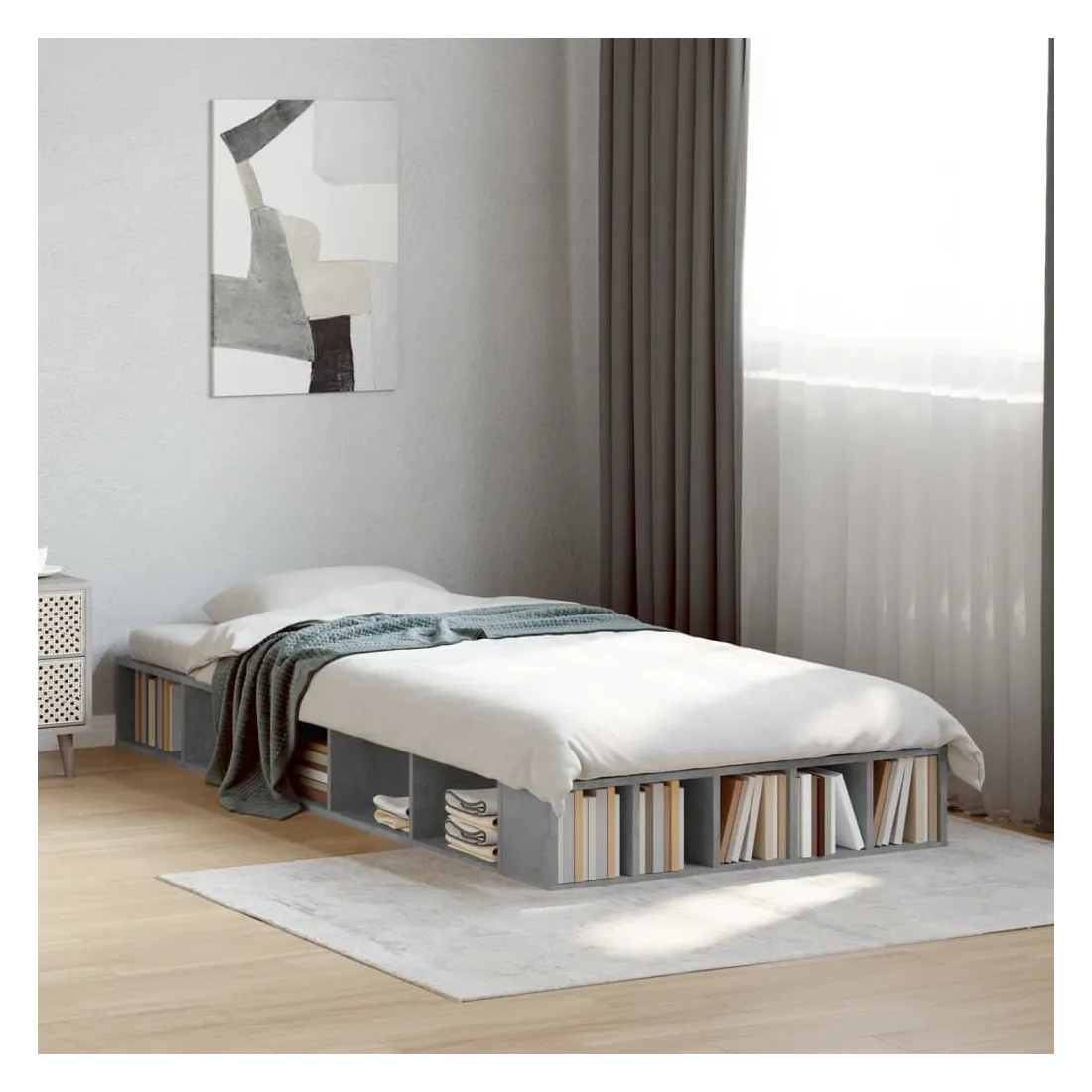 Obtenez une meilleure nuit de sommeil reposante grâce à ce cadre de lit ! Il est un supplément accueillant à toute chambre à coucher. Matériau durable : le cadre de lit est fabriquée en bois d'ingénierie. Le bois d'ingénierie est d'une qualité exceptionnelle avec une surface lisse et présente également de la résistance, de la stabilité et de la résistance à l'humidité.Lattes pour un soutien optimal : le cadre de lit est complété par des lattes pour offrir un soutien et une respirabilité essentiels à votre matelas.Fonction de rangement : ce cadre de lit offre des compartiments ouverts pour garder vos magazines, livres, jouets et autres petits objets bien organisés. Bon à savoir :Un matelas n'est pas inclus avec ce lit. Nous offrons une sélection variée de matelas. Vous pouvez consulter notre boutique pour trouver un matelas assorti.