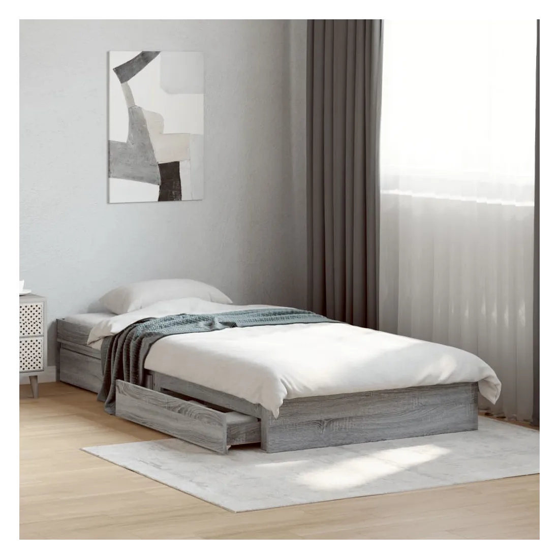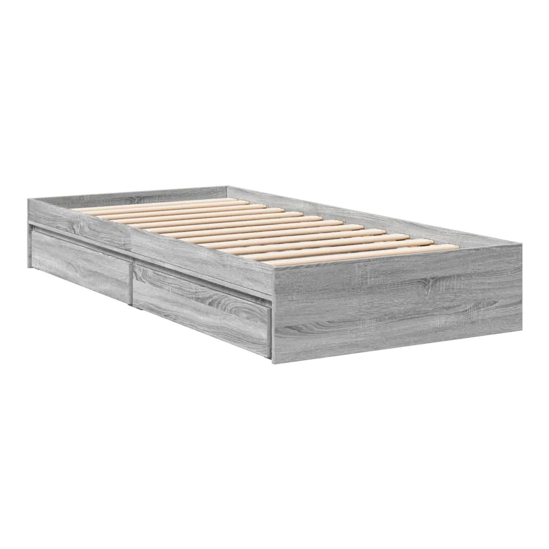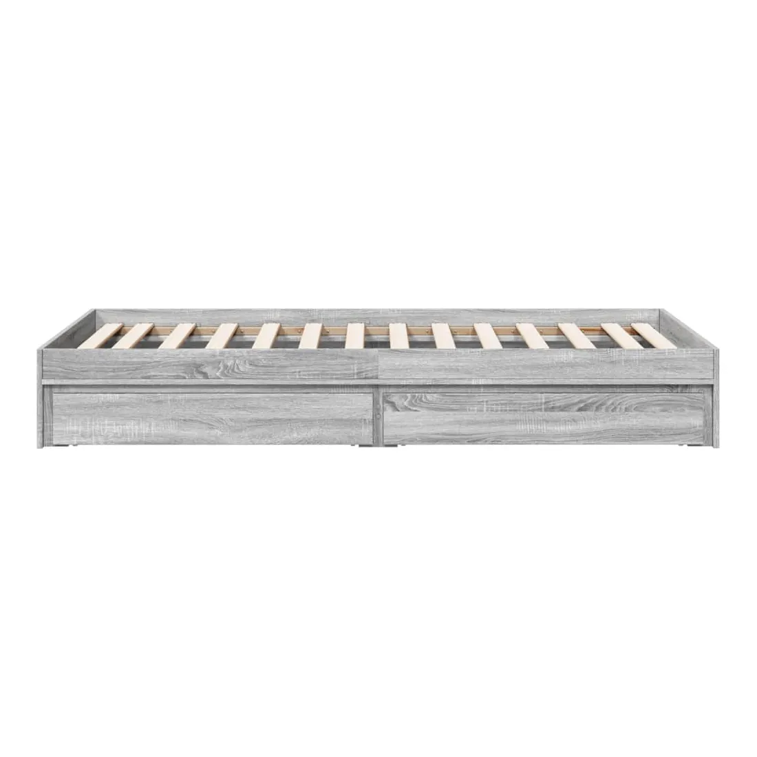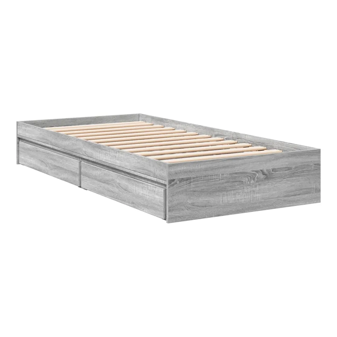 Ajoutez une touche moderne à votre chambre à coucher avec ce cadre de lit avec tiroirs ! Il apportera une touche pratique et décorative à votre espace de vie. Matériau durable : le cadre de lit est fabriquée en bois d'ingénierie. Le bois d'ingénierie est d'une qualité exceptionnelle avec une surface lisse et présente également de la résistance, de la stabilité et de la résistance à l'humidité.Lattes robustes : les lattes de contreplaqué assurent une bonne répartition du poids, garantissant que le matelas reste en place à chaque torsion de votre corps pendant le sommeil.Fonction de rangement : les tiroirs de lit inclus offrent suffisamment d'espace de rangement pour ranger vos articles essentiels, gardant votre pièce propre et bien rangée. Bon à savoir :Un matelas n'est pas inclus avec ce lit. Nous offrons une sélection variée de matelas. Vous pouvez consulter notre boutique pour trouver un matelas assorti.