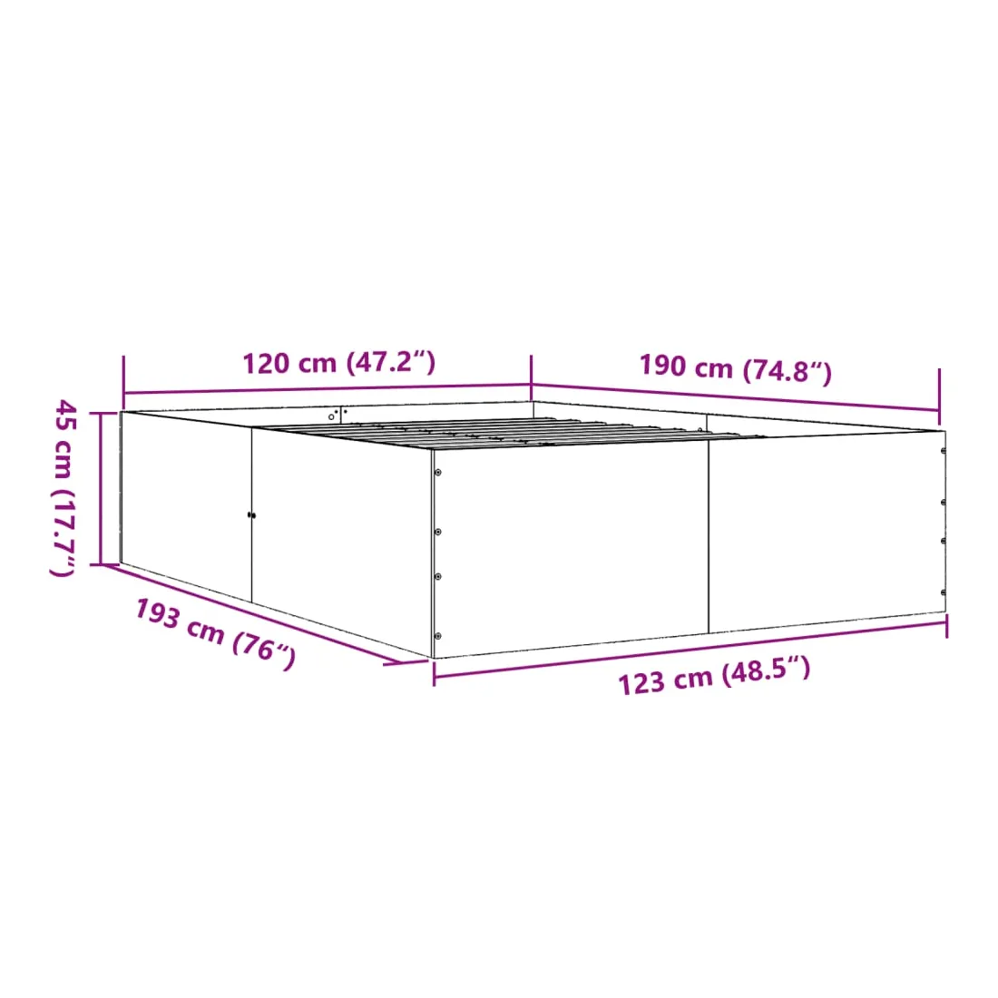- Dimensions totales : 193 x 123 x 45 cm (L x l x H)
