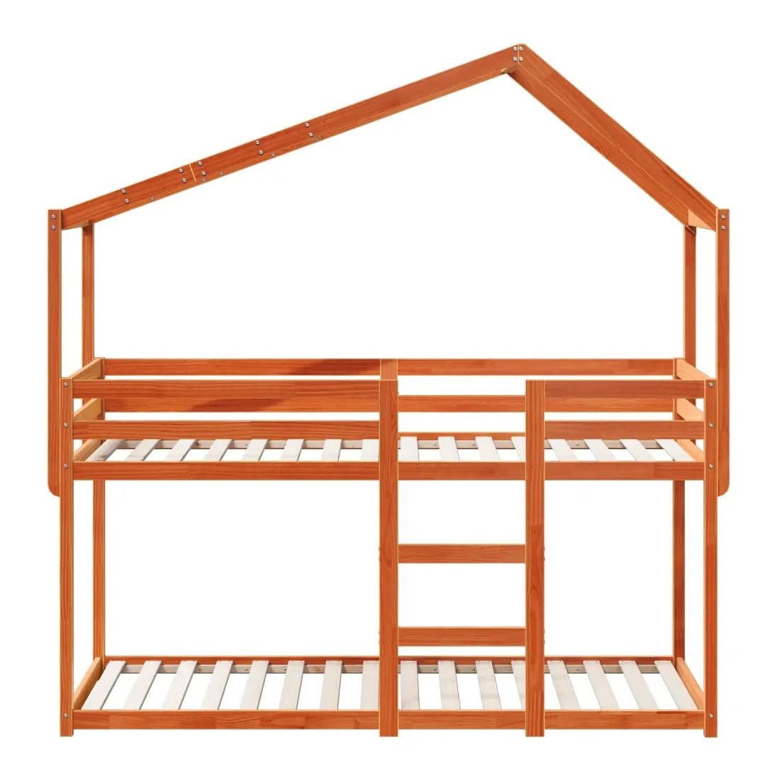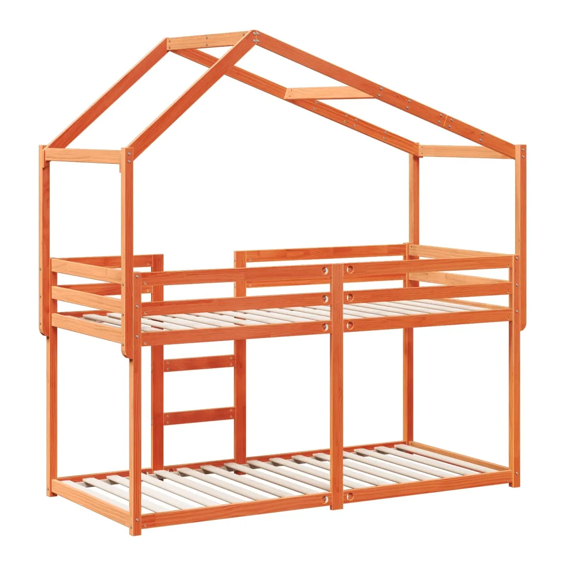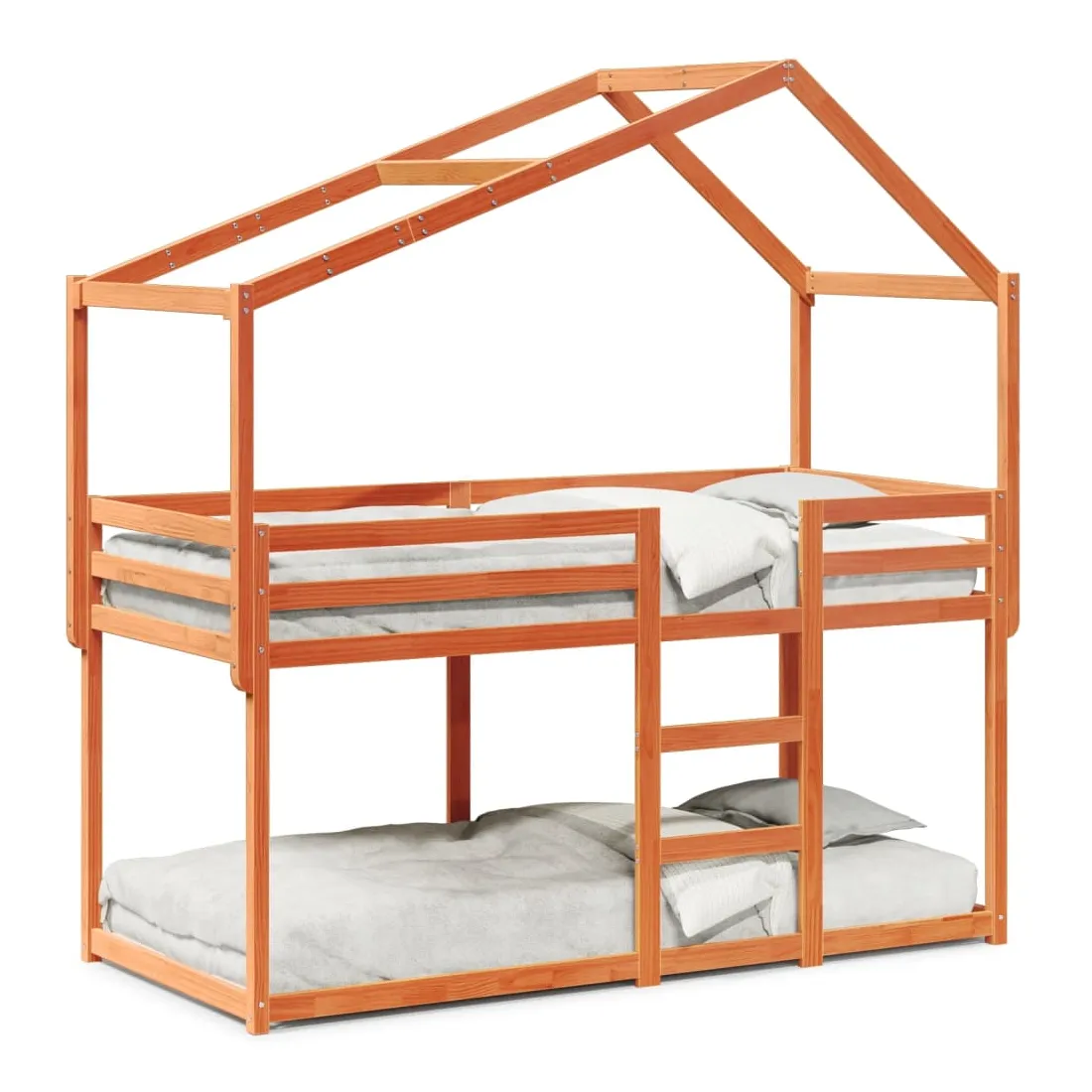 Ce lit superposé pour enfants avec toit est élégant et fonctionnel, ce qui en fait un ajout parfait à toute pièce avec un espace limité. Bois de pin massif : le bois de pin massif est un matériau naturel magnifique. Le bois de pin a un grain droit et les nœuds donnent au matériau son aspect caractéristique et rustique.Design sûr : le lit surélevé est conçu dans un souci de sécurité. Il comprend des garde-corps qui empêchent l'utilisateur de rouler pendant son sommeil.Lattes de contreplaqué : les lattes de contreplaqué assurent une bonne répartition du poids, garantissant que le matelas reste en place à chaque torsion de votre corps pendant le sommeil.Très amusant : en combinant le toit avec le lit de votre enfant, vous pouvez créer une cachette qui permettra à votre enfant de s'amuser à l'heure du coucher. Cette addition innovante non seulement sera un point focal passionnant, mais aussi apportera de la fantaisie et de l'amusement dans la chambre d'enfant.Convient aux espaces limités : le cadre de lit est un excellent choix pour toute pièce dont l'espace est limité, il fournit deux lits individuels avec un design compact.Porte latérale ouverte : le toit est doté d'une porte latérale ouverte qui permet à vos enfants d'entrer et de sortir facilement du lit. Bon à savoir :Un matelas n'est pas inclus avec ce lit. Nous offrons une sélection variée de matelas. Vous pouvez consulter notre boutique pour trouver un matelas assorti.