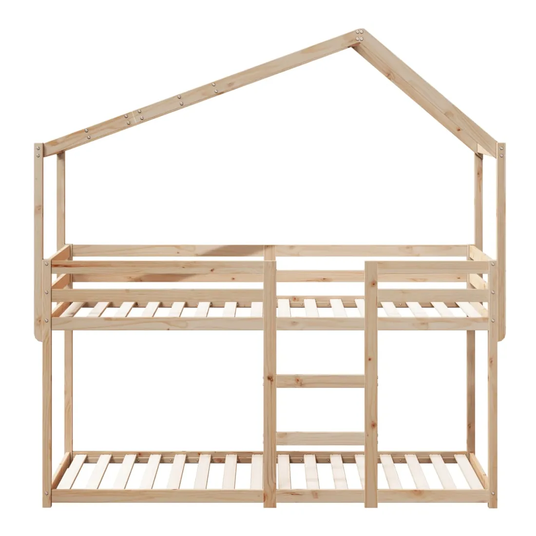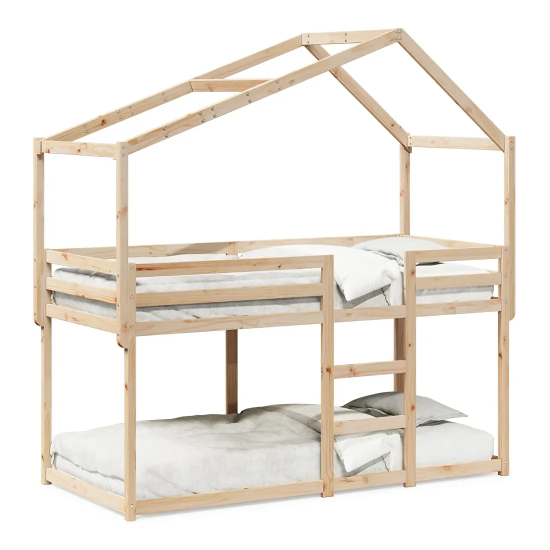 Ce lit superposé pour enfants avec toit est élégant et fonctionnel, ce qui en fait un ajout parfait à toute pièce avec un espace limité. Bois de pin massif : le bois de pin massif est un matériau naturel magnifique. Le bois de pin a un grain droit et les nœuds donnent au matériau son aspect caractéristique et rustique.Design sûr : le lit surélevé est conçu dans un souci de sécurité. Il comprend des garde-corps qui empêchent l'utilisateur de rouler pendant son sommeil.Lattes de contreplaqué : les lattes de contreplaqué assurent une bonne répartition du poids, garantissant que le matelas reste en place à chaque torsion de votre corps pendant le sommeil.Très amusant : en combinant le toit avec le lit de votre enfant, vous pouvez créer une cachette qui permettra à votre enfant de s'amuser à l'heure du coucher. Cette addition innovante non seulement sera un point focal passionnant, mais aussi apportera de la fantaisie et de l'amusement dans la chambre d'enfant.Convient aux espaces limités : le cadre de lit est un excellent choix pour toute pièce dont l'espace est limité, il fournit deux lits individuels avec un design compact.Porte latérale ouverte : le toit est doté d'une porte latérale ouverte qui permet à vos enfants d'entrer et de sortir facilement du lit. Bon à savoir :Un matelas n'est pas inclus avec ce lit. Nous offrons une sélection variée de matelas. Vous pouvez consulter notre boutique pour trouver un matelas assorti.