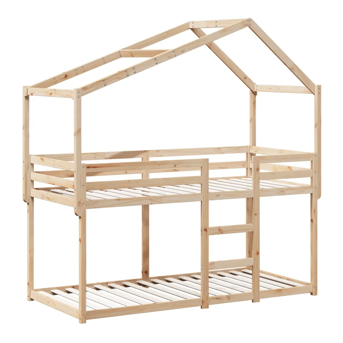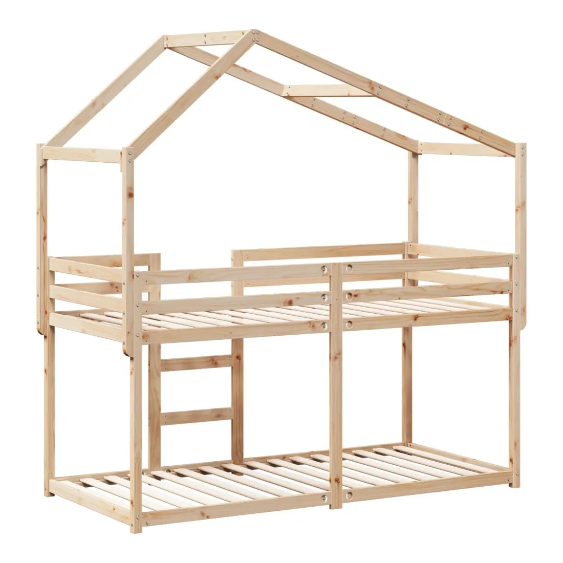 Ce lit superposé pour enfants avec toit est élégant et fonctionnel, ce qui en fait un ajout parfait à toute pièce avec un espace limité. Bois de pin massif : le bois de pin massif est un matériau naturel magnifique. Le bois de pin a un grain droit et les nœuds donnent au matériau son aspect caractéristique et rustique.Design sûr : le lit surélevé est conçu dans un souci de sécurité. Il comprend des garde-corps qui empêchent l'utilisateur de rouler pendant son sommeil.Lattes de contreplaqué : les lattes de contreplaqué assurent une bonne répartition du poids, garantissant que le matelas reste en place à chaque torsion de votre corps pendant le sommeil.Très amusant : en combinant le toit avec le lit de votre enfant, vous pouvez créer une cachette qui permettra à votre enfant de s'amuser à l'heure du coucher. Cette addition innovante non seulement sera un point focal passionnant, mais aussi apportera de la fantaisie et de l'amusement dans la chambre d'enfant.Convient aux espaces limités : le cadre de lit est un excellent choix pour toute pièce dont l'espace est limité, il fournit deux lits individuels avec un design compact.Porte latérale ouverte : le toit est doté d'une porte latérale ouverte qui permet à vos enfants d'entrer et de sortir facilement du lit. Bon à savoir :Un matelas n'est pas inclus avec ce lit. Nous offrons une sélection variée de matelas. Vous pouvez consulter notre boutique pour trouver un matelas assorti.