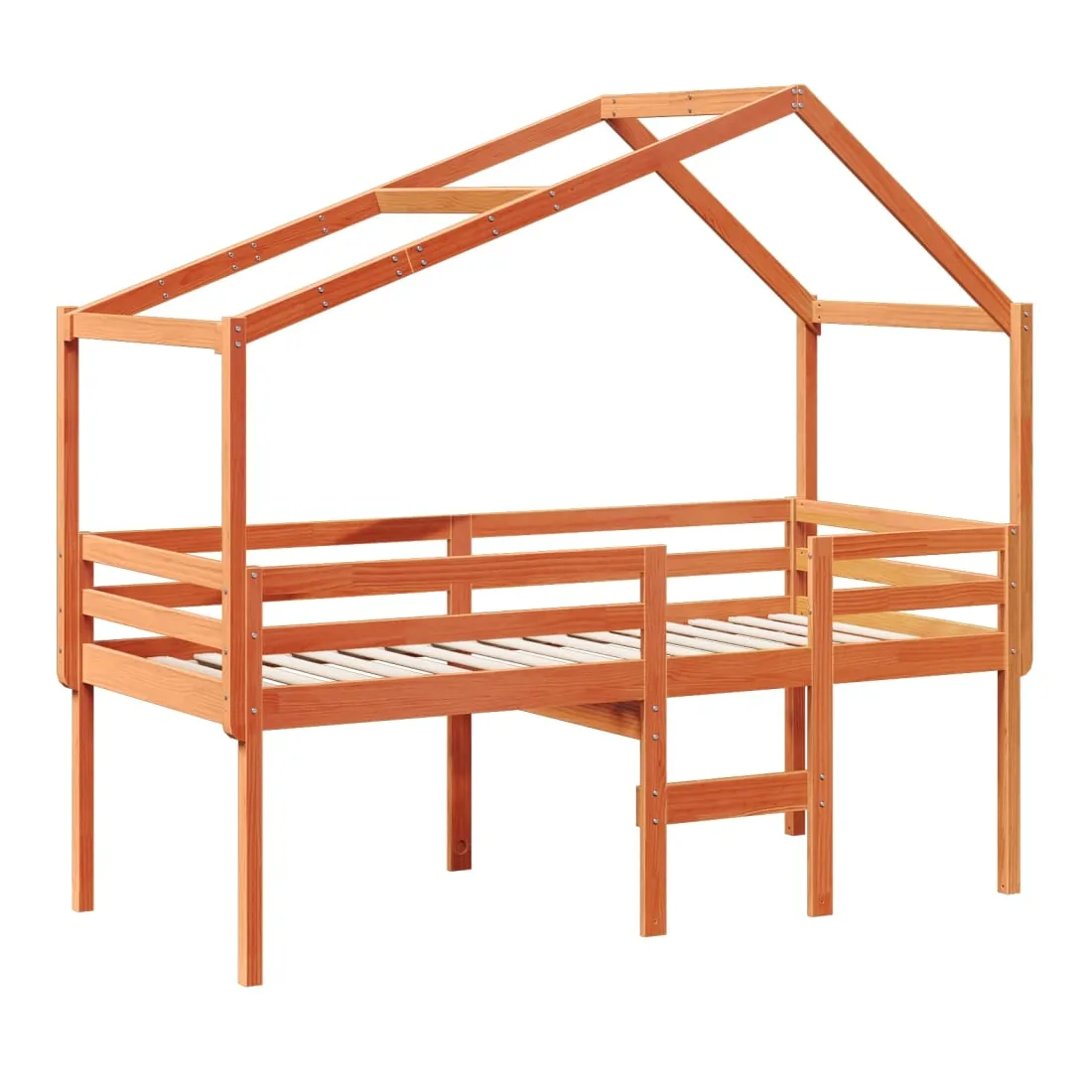 Ce lit haut, dont la polyvalence est au cœur de son design, est une combinaison parfaite de style moderne et élégant et de praticité. Il est idéal pour les petites pièces. Bois de pin massif : le bois de pin massif est un matériau naturel magnifique. Le bois de pin a un grain droit et les nœuds donnent au matériau son aspect caractéristique et rustique.Fonction pratique : le lit surélevé offre un excellent moyen d'utiliser l'espace au sol dans la chambre de votre enfant, vous pouvez le combiner avec un rideau de jeu cool, un matelas de jeu et un panneau d'abri comme un coin de jeu ou utiliser la zone en dessous pour le stockage. Les lattes en contreplaqué offrent un soutien supplémentaire à votre lit. Elles prolongent la durée de vie de votre matelas en absorbant la majeure partie de la tension et du poids du lit.Design sûr : l'échelle intégrée du lit surélevé facilite l'entrée et la sortie du lit, et les garde-corps garantissent la sécurité de vos jeunes pendant qu'ils dorment.Très amusant : en combinant le toit avec le lit de votre enfant, vous pouvez créer une cachette qui permettra à votre enfant de s'amuser à l'heure du coucher. Cette addition innovante non seulement sera un point focal passionnant, mais aussi apportera de la fantaisie et de l'amusement dans la chambre d'enfant.Porte latérale ouverte : le toit est doté d'une porte latérale ouverte qui permet à vos enfants d'entrer et de sortir facilement du lit. Bon à savoir :Un matelas n'est pas inclus avec ce lit. Nous offrons une sélection variée de matelas. Vous pouvez consulter notre boutique pour trouver un matelas assorti.