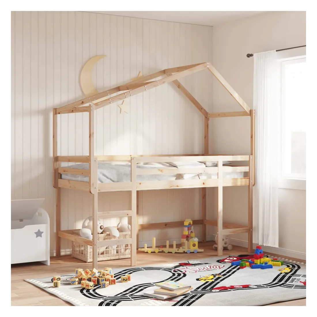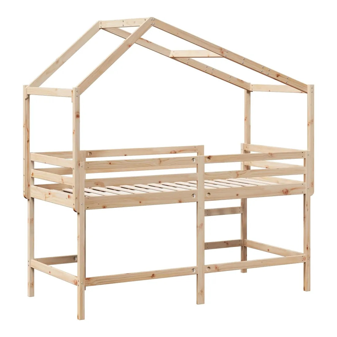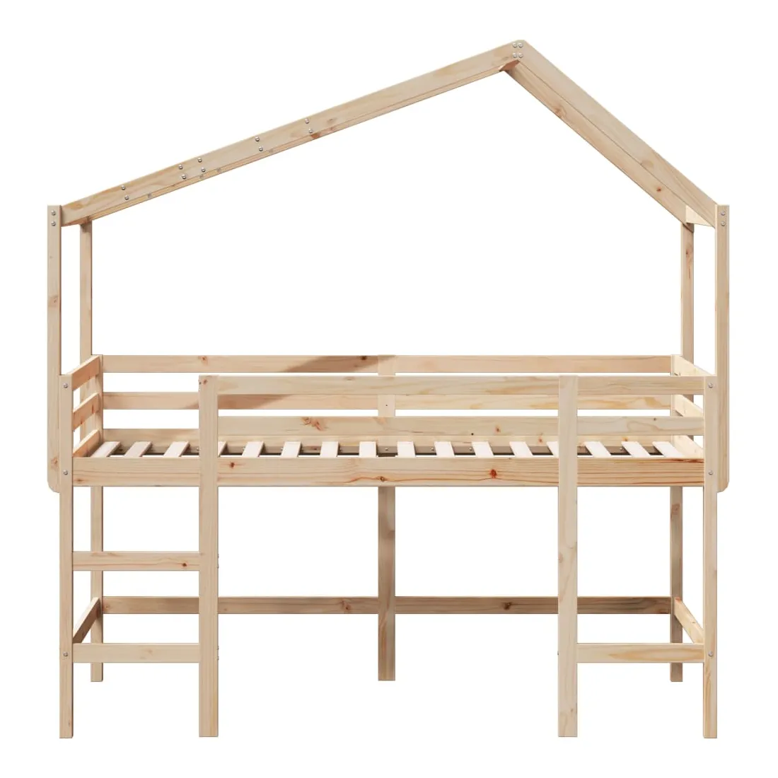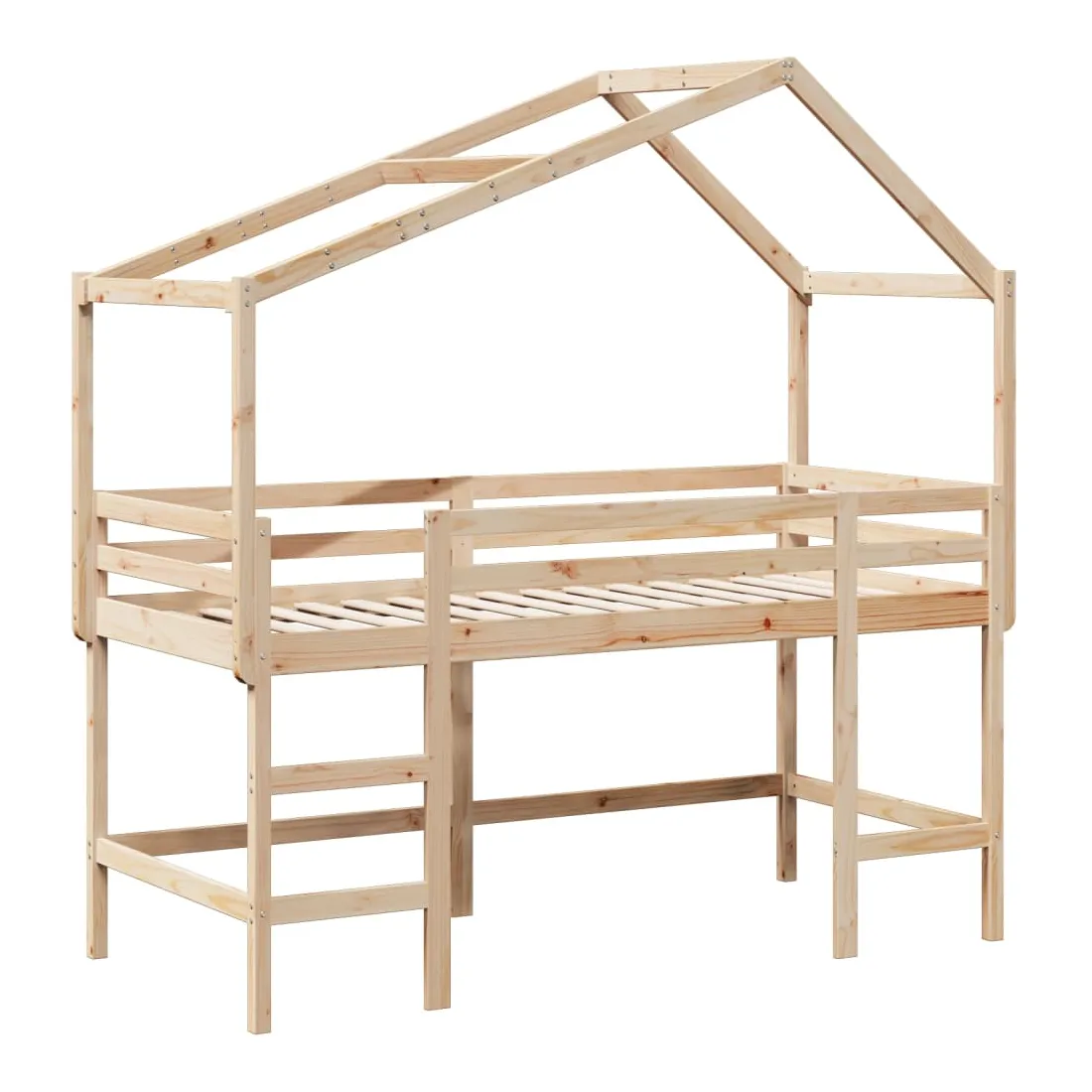Ce lit mezzanine pour enfants a été fabriqué en pin massif et est conçu pour recevoir et optimiser l'espace. Bois de pin massif : le bois de pin massif est un matériau naturel magnifique. Le bois de pin a un grain droit et les nœuds donnent au matériau son aspect caractéristique et rustique.Utilisation complète de l'espace : ce lit mezzanine simple est surélevé de 78,5 cm au-dessus du sol, offrant suffisamment d'espace en dessous pour le rangement ou d'autres activités. Cet espace peut être utilisé pour empiler des boîtes de rangement, ranger de gros jouets ou même placer un canapé pour enfants pour lire. De plus, votre enfant peut utiliser l'espace sous le cadre de lit en bois comme base secrète et profiter de jeux imaginatifs.Barrières de sécurité : le lit mezzanine pour enfants est équipé de garde-corps de sécurité sur les 4 côtés, afin que votre enfant puisse dormir sans craindre de tomber.Échelle pratique : ce lit mezzanine pour enfants est doté d'une échelle qui permet de monter et de descendre dans et du lit en toute simplicité. Elle apporte également de la joie et transforme leur chambre en terrain de jeu intérieur.Porte latérale ouverte : le toit est doté d'une porte latérale ouverte qui permet à vos enfants d'entrer et de sortir facilement du lit. Bon à savoir :Un matelas n'est pas inclus avec ce lit. Nous offrons une sélection variée de matelas. Vous pouvez consulter notre boutique pour trouver un matelas assorti. Attention :Pour éviter qu'il ne bascule, ce produit doit être utilisé avec le dispositif de fixation murale fourni.