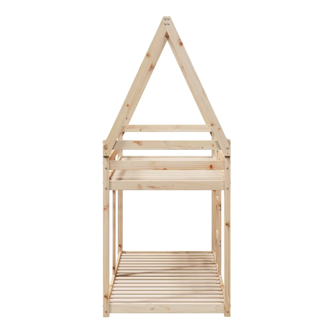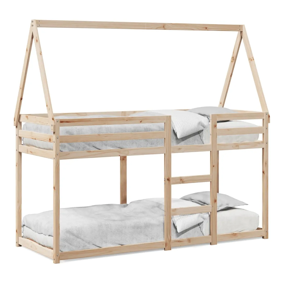 Ce lit superposé pour enfants avec toit est élégant et fonctionnel, ce qui en fait un ajout parfait à toute pièce avec un espace limité. Bois de pin massif : le bois de pin massif est un matériau naturel magnifique. Le bois de pin a un grain droit et les nœuds donnent au matériau son aspect caractéristique et rustique.Design sûr : le lit surélevé est conçu dans un souci de sécurité. Il comprend des garde-corps qui empêchent l'utilisateur de rouler pendant son sommeil.Lattes de contreplaqué : les lattes de contreplaqué assurent une bonne répartition du poids, garantissant que le matelas reste en place à chaque torsion de votre corps pendant le sommeil.Très amusant : en combinant le toit avec le lit de votre enfant, vous pouvez créer une cachette qui permettra à votre enfant de s'amuser à l'heure du coucher. Cette addition innovante non seulement sera un point focal passionnant, mais aussi apportera de la fantaisie et de l'amusement dans la chambre d'enfant.Convient aux espaces limités : le cadre de lit est un excellent choix pour toute pièce dont l'espace est limité, il fournit deux lits individuels avec un design compact.Porte latérale ouverte : le toit est doté d'une porte latérale ouverte qui permet à vos enfants d'entrer et de sortir facilement du lit. Bon à savoir :Un matelas n'est pas inclus avec ce lit. Nous offrons une sélection variée de matelas. Vous pouvez consulter notre boutique pour trouver un matelas assorti.