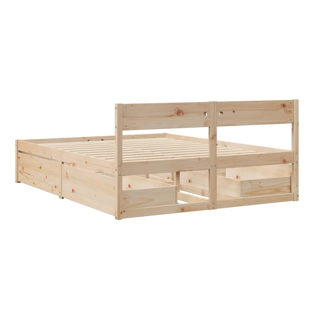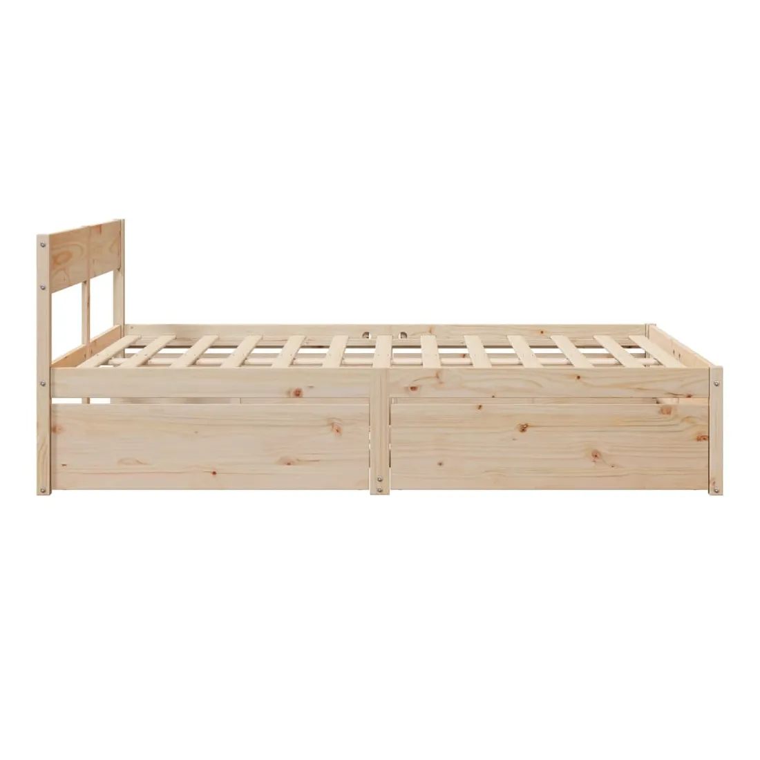 Ajoutez une touche moderne à votre chambre à coucher avec ce cadre de lit avec tiroirs ! Il apportera une touche pratique et décorative à votre espace de vie. Cadre stable et durable : le bois de pin massif est connu pour sa résistance et sa durabilité. Ses grains droits et ses nœuds distinctifs contribuent à son charme rustique.Lattes de contreplaqué : les lattes de contreplaqué assurent une bonne répartition du poids, garantissant que le matelas reste en place à chaque torsion de votre corps pendant le sommeil.Fonction de rangement : les tiroirs de lit inclus offrent suffisamment d'espace de rangement pour ranger vos articles essentiels, gardant votre pièce propre et bien rangée.Tête de lit polyvalente : ce cadre de lit est équipé d'une tête de lit qui offre un excellent soutien dorsal lorsque vous vous asseyez dans le lit pour lire ou regarder la télévision, tout en servant d'élément décoratif. Bon à savoir :Un matelas n'est pas inclus avec ce lit. Nous offrons une sélection variée de matelas. Vous pouvez consulter notre boutique pour trouver un matelas assorti.