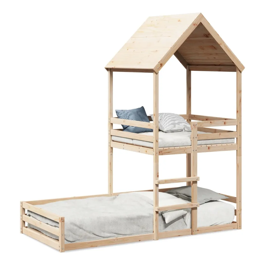 Ce lit superposé en bois est élégant et fonctionnel, ce qui en fait un supplément parfait à toute pièce dont l'espace est limité. Cadre stable et durable : le bois de pin massif est connu pour sa résistance et sa durabilité. Ses grains droits et ses nœuds distinctifs contribuent à son charme rustique.Très amusant : vous pouvez créer une cachette avec ce lit superposé pour enfants qui permet à votre enfant de s'amuser à l'heure du coucher. Cette addition innovante non seulement sera un point focal passionnant, mais aussi apportera de la fantaisie et de l'amusement dans la chambre d'enfant.Échelle pratique : ce lit superposé en bois est doté d'une échelle qui facilite la montée et la descente dans et du lit.Lattes pour un soutien optimal : le cadre de lit est complété par des lattes pour offrir un soutien et une respirabilité essentiels à votre matelas. Bon à savoir :Les matelas ne sont pas inclus avec ce lit. Nous offrons une sélection variée de matelas. Vous pouvez consulter notre boutique pour trouver un matelas assorti.Ce lit convient aux enfants de plus de 4 ans.