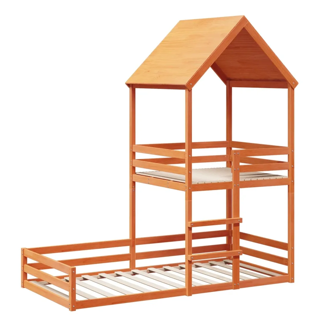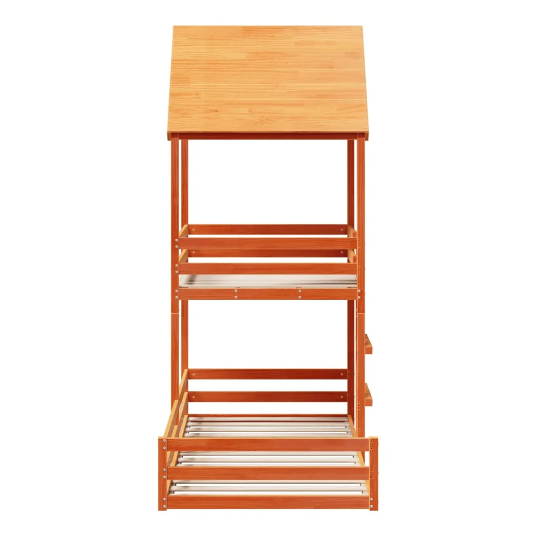 Ce lit superposé en bois est élégant et fonctionnel, ce qui en fait un supplément parfait à toute pièce dont l'espace est limité. Cadre stable et durable : le bois de pin massif est connu pour sa résistance et sa durabilité. Ses grains droits et ses nœuds distinctifs contribuent à son charme rustique.Très amusant : vous pouvez créer une cachette avec ce lit superposé pour enfants qui permet à votre enfant de s'amuser à l'heure du coucher. Cette addition innovante non seulement sera un point focal passionnant, mais aussi apportera de la fantaisie et de l'amusement dans la chambre d'enfant.Échelle pratique : ce lit superposé en bois est doté d'une échelle qui facilite la montée et la descente dans et du lit.Lattes pour un soutien optimal : le cadre de lit est complété par des lattes pour offrir un soutien et une respirabilité essentiels à votre matelas. Bon à savoir :Les matelas ne sont pas inclus avec ce lit. Nous offrons une sélection variée de matelas. Vous pouvez consulter notre boutique pour trouver un matelas assorti.Ce lit est conçu aux enfants de plus de 4 ans.
