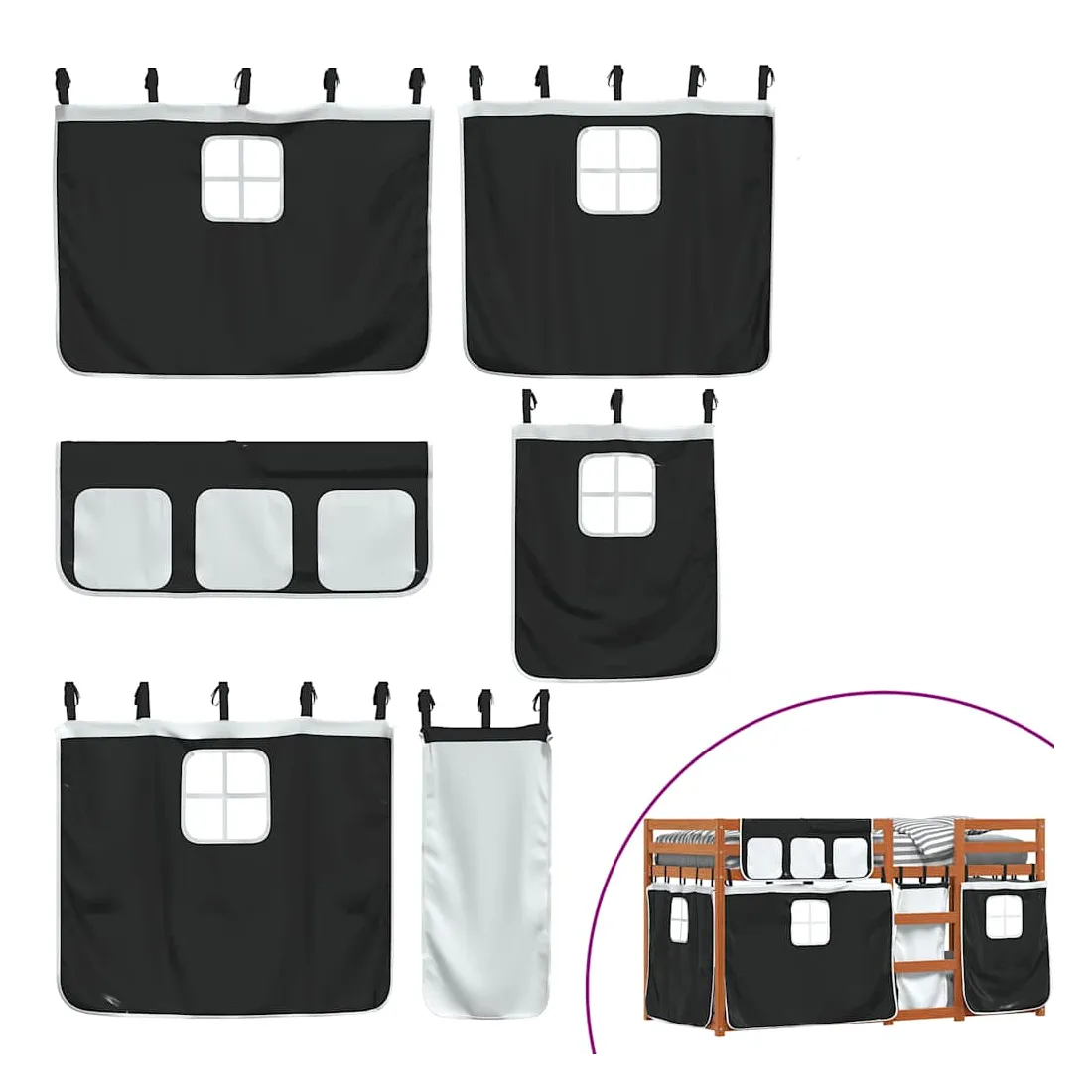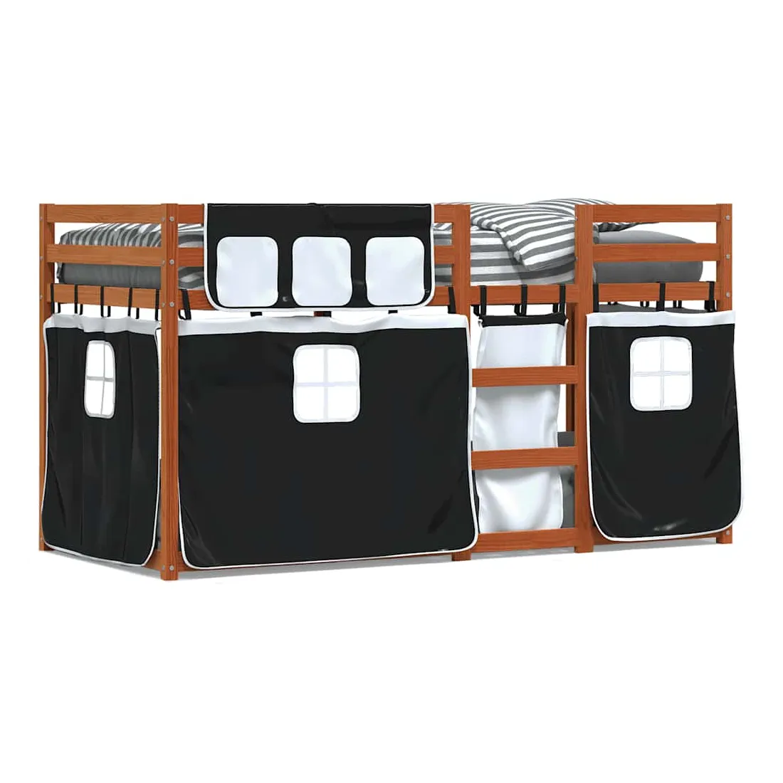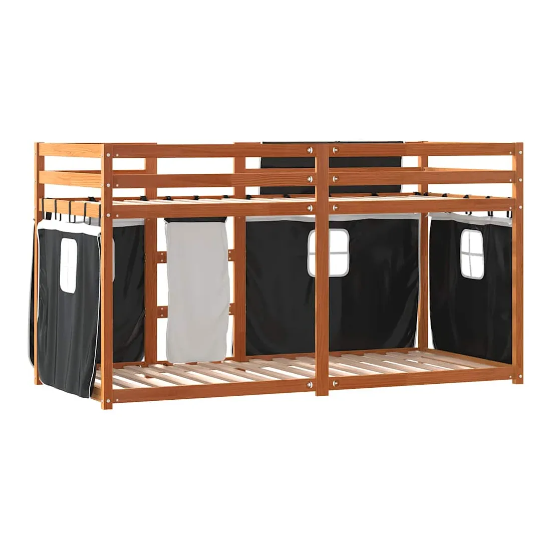 Ce lit superposé en bois est élégant et fonctionnel, ce qui en fait un supplément parfait à toute pièce dont l'espace est limité. Bois de pin massif : ce lit superposé est fabriqué en bois de pin massif pour plus de stabilité et de durabilité. Le bois de pin a un grain droit et les nœuds donnent au matériau son aspect rustique caractéristique.Très amusant : vous pouvez combiner les rideaux avec le lit superposé bas pour créer la base secrète de votre enfant, ce qui permet de s’amuser à l’heure du coucher et d’ajouter un point d'intérêt à la chambre à coucher !Barrières de sécurité : le lit supérieur est équipé de garde-corps de sécurité sur les 4 côtés, afin que votre enfant puisse dormir sans craindre de tomber.Échelle pratique : ce lit superposé double est doté d'une échelle qui permet de monter et de descendre dans et du lit en toute simplicité. Elle apporte également de la joie et transforme leur chambre en terrain de jeu intérieur. Bon à savoir :Un matelas n'est pas inclus avec ce lit. Nous offrons une sélection variée de matelas. Vous pouvez consulter notre boutique pour trouver un matelas assorti. Attention :Pour éviter qu'il ne bascule, ce produit doit être utilisé avec le dispositif de fixation murale fourni.
