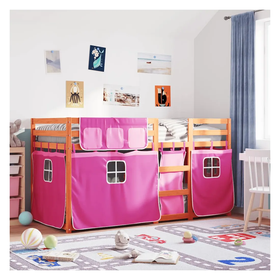 Ce lit superposé en bois est élégant et fonctionnel, ce qui en fait un supplément parfait à toute pièce dont l'espace est limité. Bois de pin massif : ce lit superposé est fabriqué en bois de pin massif pour plus de stabilité et de durabilité. Le bois de pin a un grain droit et les nœuds donnent au matériau son aspect rustique caractéristique.Très amusant : vous pouvez combiner les rideaux avec le lit superposé bas pour créer la base secrète de votre enfant, ce qui permet de s’amuser à l’heure du coucher et d’ajouter un point d'intérêt à la chambre à coucher !Barrières de sécurité : le lit supérieur est équipé de garde-corps de sécurité sur les 4 côtés, afin que votre enfant puisse dormir sans craindre de tomber.Échelle pratique : ce lit superposé double est doté d'une échelle qui permet de monter et de descendre dans et du lit en toute simplicité. Elle apporte également de la joie et transforme leur chambre en terrain de jeu intérieur. Bon à savoir :Un matelas n'est pas inclus avec ce lit. Nous offrons une sélection variée de matelas. Vous pouvez consulter notre boutique pour trouver un matelas assorti. Attention :Pour éviter qu'il ne bascule, ce produit doit être utilisé avec le dispositif de fixation murale fourni.