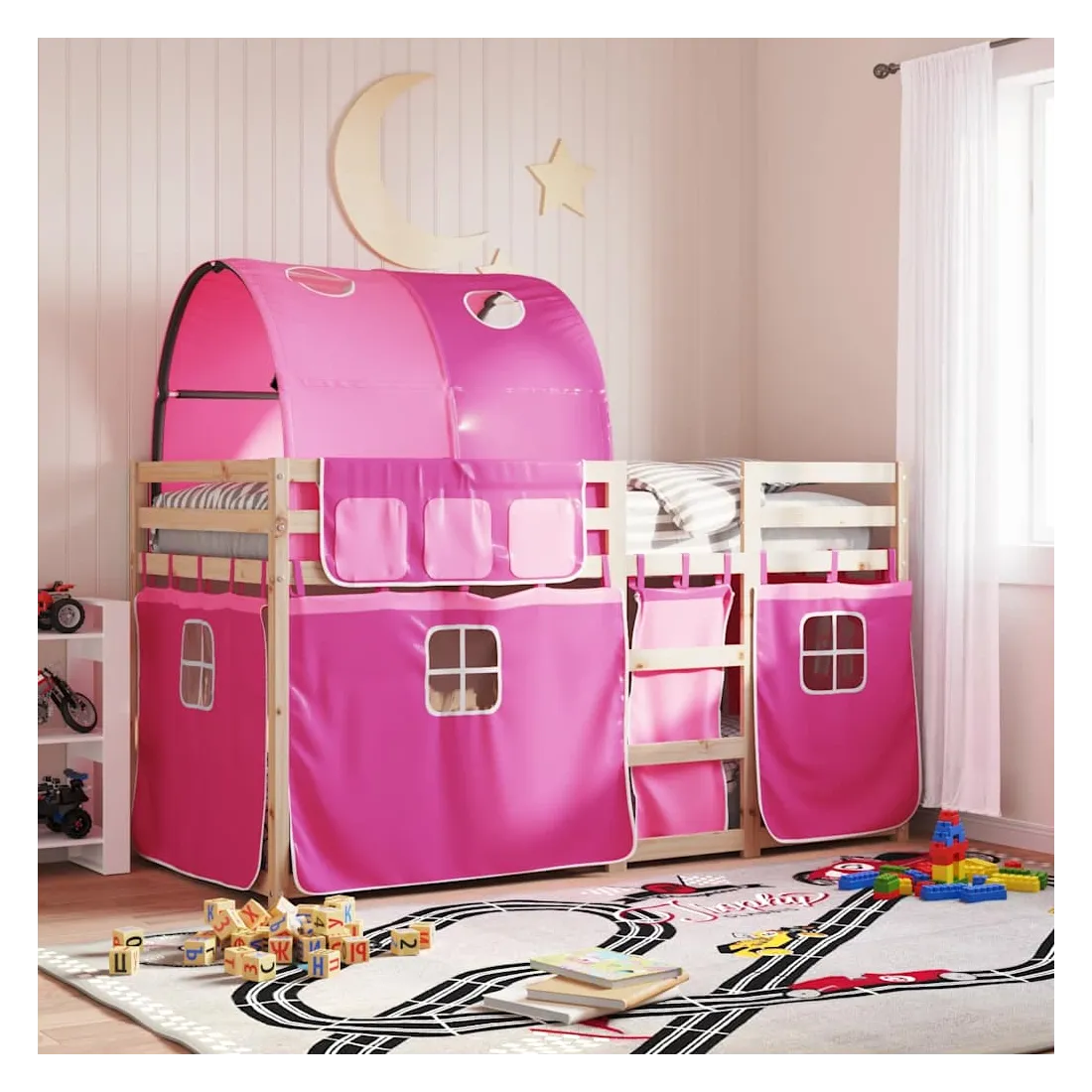 Ce lit superposé en bois est élégant et fonctionnel, ce qui en fait un supplément parfait à toute pièce dont l'espace est limité. Bois de pin massif : ce lit superposé est fabriqué en bois de pin massif pour plus de stabilité et de durabilité. Le bois de pin a un grain droit et les nœuds donnent au matériau son aspect rustique caractéristique.Très amusant : vous pouvez combiner les rideaux avec le lit superposé bas pour créer la base secrète de votre enfant, ce qui permet de s’amuser à l’heure du coucher et d’ajouter un point d'intérêt à la chambre à coucher !Barrières de sécurité : le lit supérieur est équipé de garde-corps de sécurité sur les 4 côtés, afin que votre enfant puisse dormir sans craindre de tomber.Échelle pratique : ce lit superposé double est doté d'une échelle qui permet de monter et de descendre dans et du lit en toute simplicité. Elle apporte également de la joie et transforme leur chambre en terrain de jeu intérieur. Bon à savoir :Un matelas n'est pas inclus avec ce lit. Nous offrons une sélection variée de matelas. Vous pouvez consulter notre boutique pour trouver un matelas assorti. Attention :Pour éviter qu'il ne bascule, ce produit doit être utilisé avec le dispositif de fixation murale fourni.