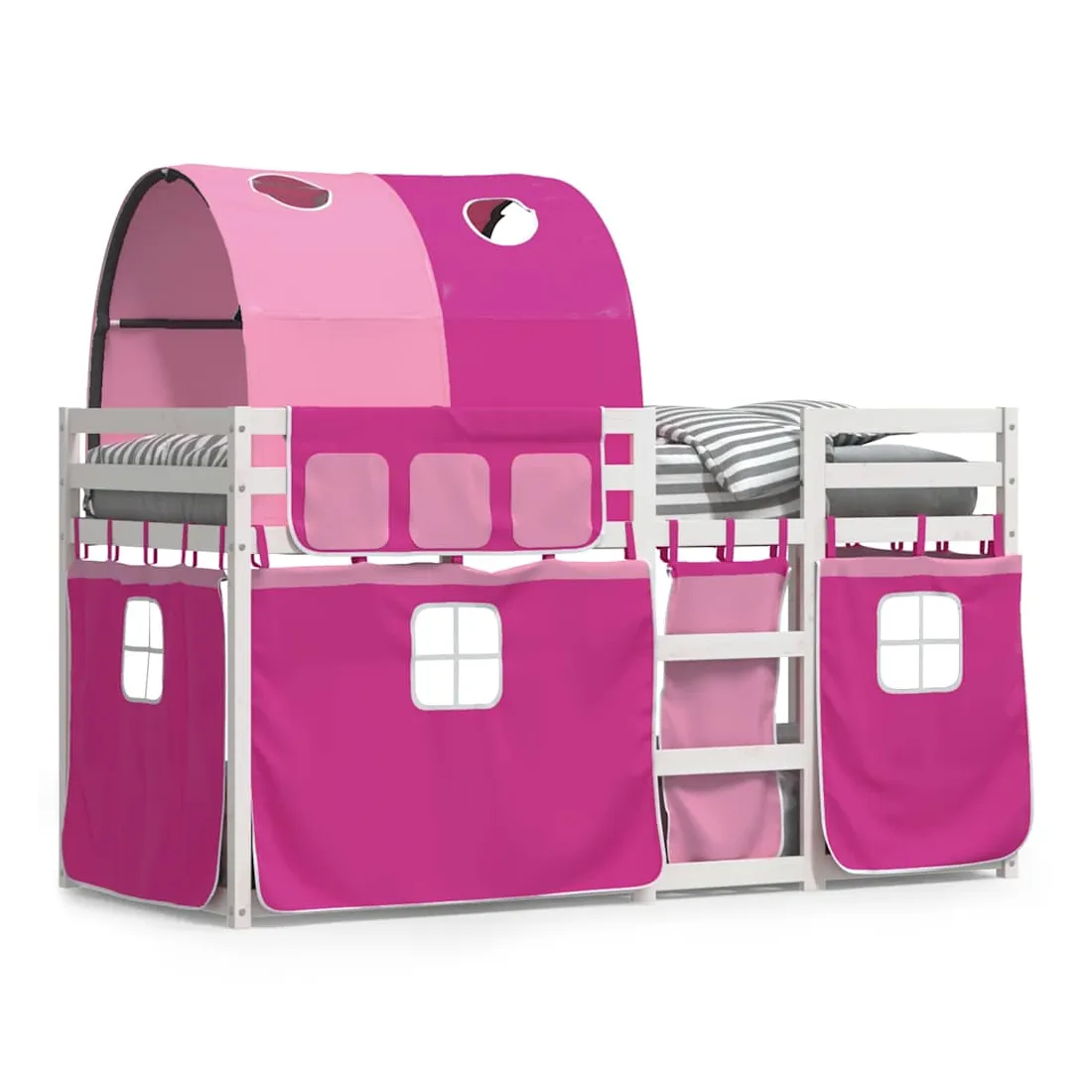 Ce lit superposé en bois est élégant et fonctionnel, ce qui en fait un supplément parfait à toute pièce dont l'espace est limité. Bois de pin massif : ce lit superposé est fabriqué en bois de pin massif pour plus de stabilité et de durabilité. Le bois de pin a un grain droit et les nœuds donnent au matériau son aspect rustique caractéristique.Très amusant : vous pouvez combiner les rideaux avec le lit superposé bas pour créer la base secrète de votre enfant, ce qui permet de s’amuser à l’heure du coucher et d’ajouter un point d'intérêt à la chambre à coucher !Barrières de sécurité : le lit supérieur est équipé de garde-corps de sécurité sur les 4 côtés, afin que votre enfant puisse dormir sans craindre de tomber.Échelle pratique : ce lit superposé double est doté d'une échelle qui permet de monter et de descendre dans et du lit en toute simplicité. Elle apporte également de la joie et transforme leur chambre en terrain de jeu intérieur. Bon à savoir :Un matelas n'est pas inclus avec ce lit. Nous offrons une sélection variée de matelas. Vous pouvez consulter notre boutique pour trouver un matelas assorti. Attention :Pour éviter qu'il ne bascule, ce produit doit être utilisé avec le dispositif de fixation murale fourni.