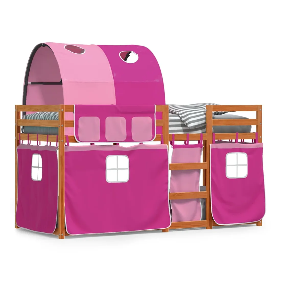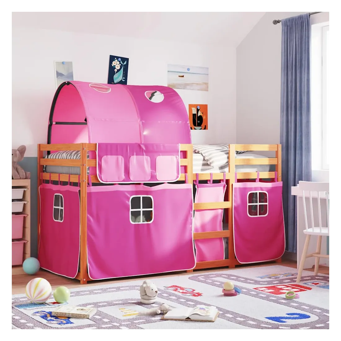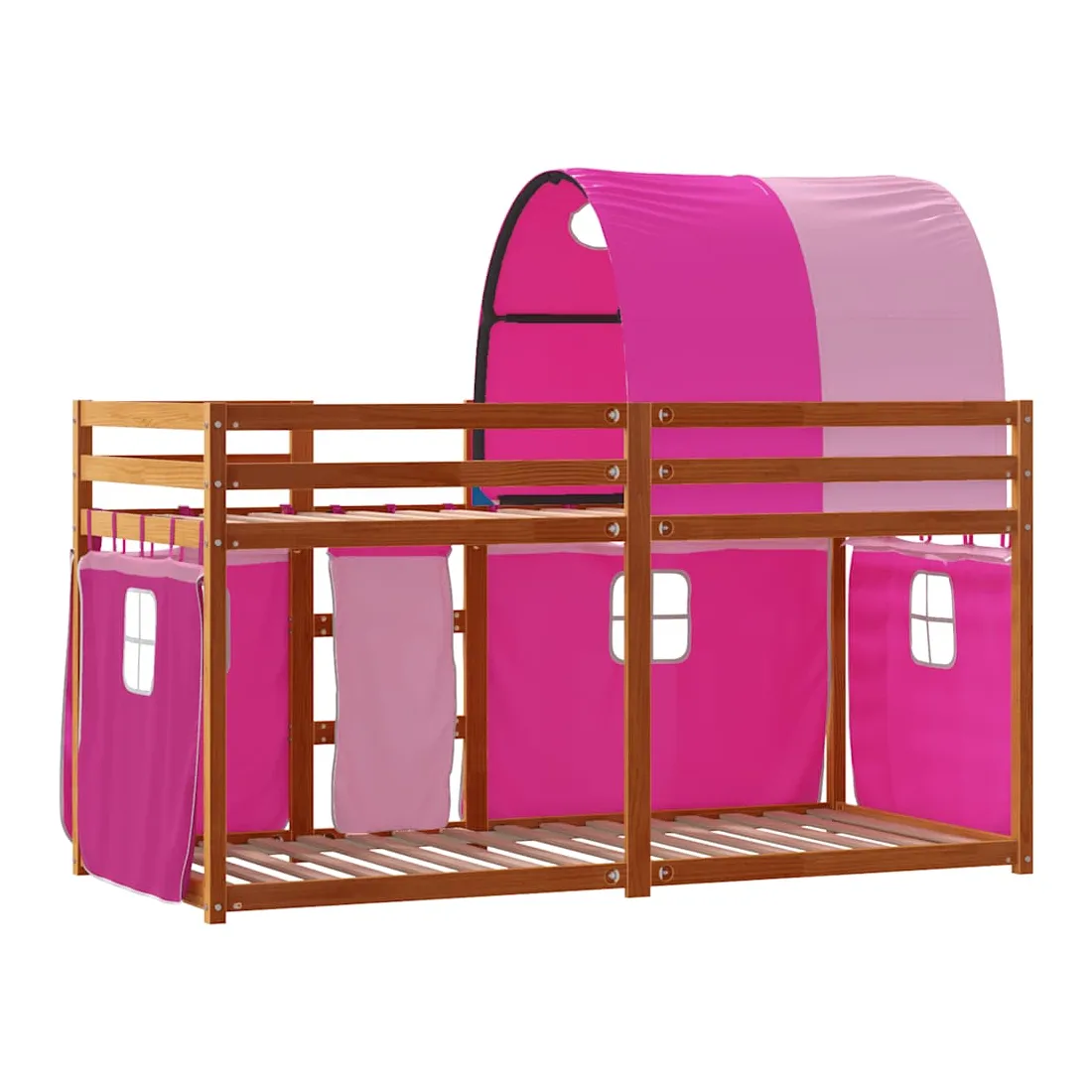 Ce lit superposé en bois est élégant et fonctionnel, ce qui en fait un supplément parfait à toute pièce dont l'espace est limité. Bois de pin massif : ce lit superposé est fabriqué en bois de pin massif pour plus de stabilité et de durabilité. Le bois de pin a un grain droit et les nœuds donnent au matériau son aspect rustique caractéristique.Très amusant : vous pouvez combiner les rideaux avec le lit superposé bas pour créer la base secrète de votre enfant, ce qui permet de s’amuser à l’heure du coucher et d’ajouter un point d'intérêt à la chambre à coucher !Barrières de sécurité : le lit supérieur est équipé de garde-corps de sécurité sur les 4 côtés, afin que votre enfant puisse dormir sans craindre de tomber.Échelle pratique : ce lit superposé double est doté d'une échelle qui permet de monter et de descendre dans et du lit en toute simplicité. Elle apporte également de la joie et transforme leur chambre en terrain de jeu intérieur. Bon à savoir :Un matelas n'est pas inclus avec ce lit. Nous offrons une sélection variée de matelas. Vous pouvez consulter notre boutique pour trouver un matelas assorti. Attention :Pour éviter qu'il ne bascule, ce produit doit être utilisé avec le dispositif de fixation murale fourni.