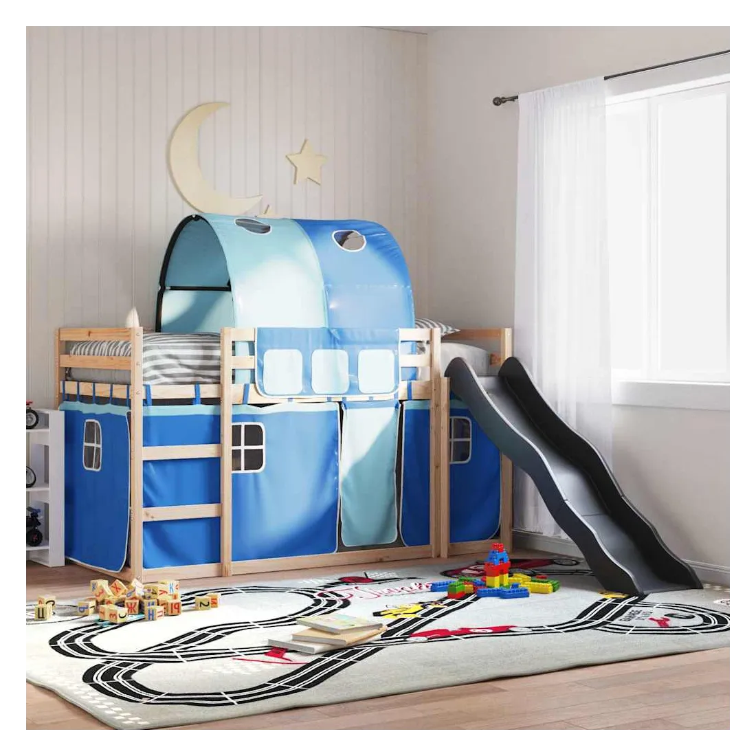 Ce lit superposé en bois est élégant et fonctionnel, ce qui en fait un supplément parfait à toute pièce dont l'espace est limité. Bois de pin massif : ce lit superposé est fabriqué en bois de pin massif pour plus de stabilité et de durabilité. Le bois de pin a un grain droit et les nœuds donnent au matériau son aspect rustique caractéristique.Très amusant : vous pouvez combiner les rideaux avec le lit superposé bas pour créer la base secrète de votre enfant, ce qui permet de s’amuser à l’heure du coucher et d’ajouter un point d'intérêt à la chambre à coucher !Barrières de sécurité : le lit supérieur est équipé de garde-corps de sécurité sur les 4 côtés, afin que votre enfant puisse dormir sans craindre de tomber.Échelle et toboggan pratiques : ce lit superposé est doté d'un toboggan amusant qui apporte de la joie et transforme leur chambre en une aire de jeux intérieure. La combinaison d'une échelle d'escalade et d'un toboggan rend l'heure du coucher plus vivante et plus intéressante pour les enfants.Lattes robustes : les lattes de contreplaqué assurent une bonne répartition du poids, garantissant que le matelas reste en place à chaque torsion de votre corps pendant le sommeil. Bon à savoir :Un matelas n'est pas inclus avec ce lit. Nous offrons une sélection variée de matelas. Vous pouvez consulter notre boutique pour trouver un matelas assorti. Attention :Pour éviter qu'il ne bascule, ce produit doit être utilisé avec le dispositif de fixation murale fourni.