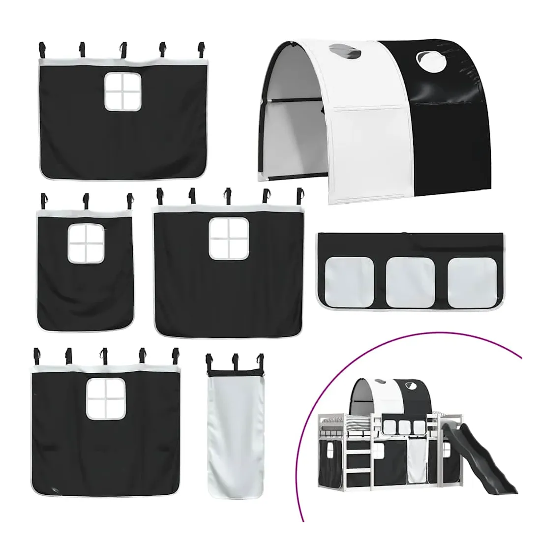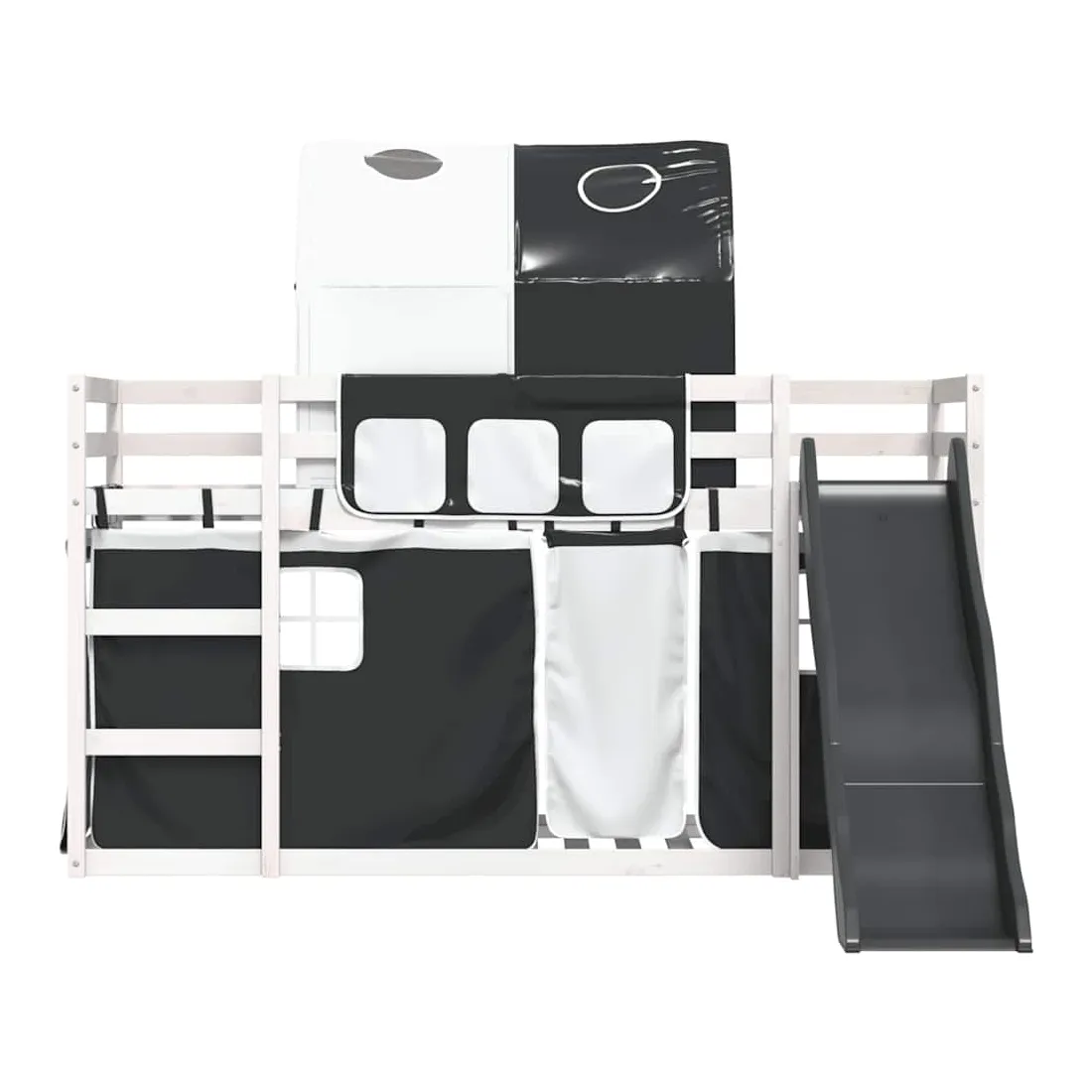 Ce lit superposé en bois est élégant et fonctionnel, ce qui en fait un supplément parfait à toute pièce dont l'espace est limité. Bois de pin massif : ce lit superposé est fabriqué en bois de pin massif pour plus de stabilité et de durabilité. Le bois de pin a un grain droit et les nœuds donnent au matériau son aspect rustique caractéristique.Très amusant : vous pouvez combiner les rideaux avec le lit superposé bas pour créer la base secrète de votre enfant, ce qui permet de s’amuser à l’heure du coucher et d’ajouter un point d'intérêt à la chambre à coucher !Barrières de sécurité : le lit supérieur est équipé de garde-corps de sécurité sur les 4 côtés, afin que votre enfant puisse dormir sans craindre de tomber.Échelle et toboggan pratiques : ce lit superposé est doté d'un toboggan amusant qui apporte de la joie et transforme leur chambre en une aire de jeux intérieure. La combinaison d'une échelle d'escalade et d'un toboggan rend l'heure du coucher plus vivante et plus intéressante pour les enfants.Lattes robustes : les lattes de contreplaqué assurent une bonne répartition du poids, garantissant que le matelas reste en place à chaque torsion de votre corps pendant le sommeil. Bon à savoir :Un matelas n'est pas inclus avec ce lit. Nous offrons une sélection variée de matelas. Vous pouvez consulter notre boutique pour trouver un matelas assorti. Attention :Pour éviter qu'il ne bascule, ce produit doit être utilisé avec le dispositif de fixation murale fourni.