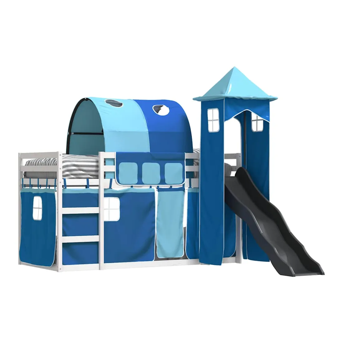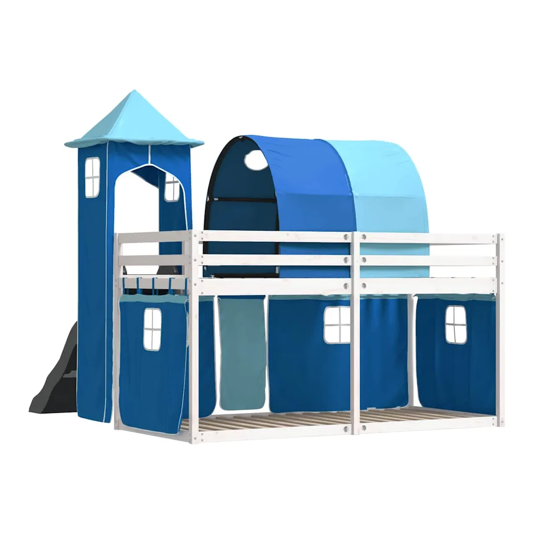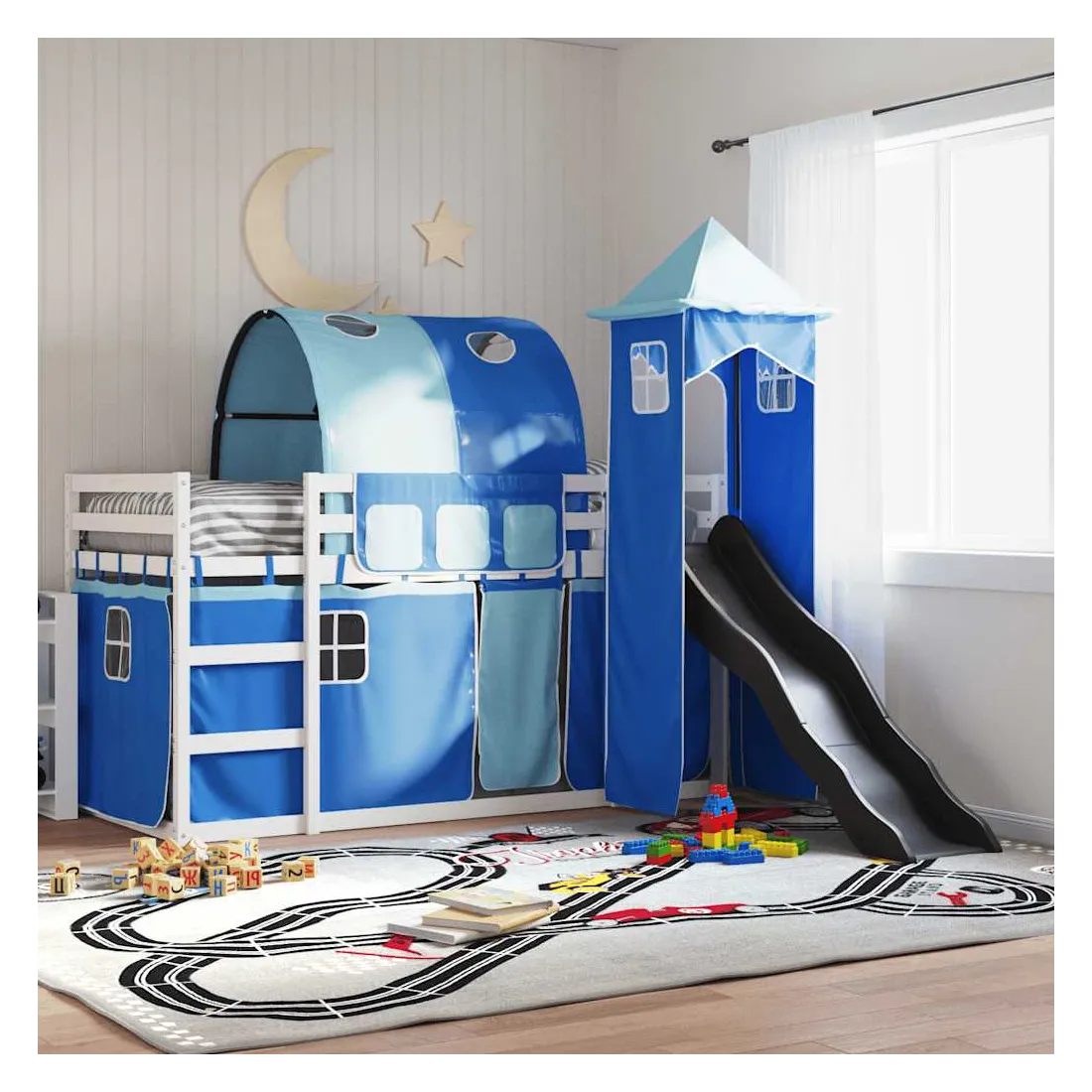 Ce lit superposé en bois est élégant et fonctionnel, ce qui en fait un supplément parfait à toute pièce dont l'espace est limité. Bois de pin massif : ce lit superposé est fabriqué en bois de pin massif pour plus de stabilité et de durabilité. Le bois de pin a un grain droit et les nœuds donnent au matériau son aspect rustique caractéristique.Très amusant : vous pouvez combiner les rideaux avec le lit superposé bas pour créer la base secrète de votre enfant, ce qui permet de s’amuser à l’heure du coucher et d’ajouter un point d'intérêt à la chambre à coucher !Barrières de sécurité : le lit supérieur est équipé de garde-corps de sécurité sur les 4 côtés, afin que votre enfant puisse dormir sans craindre de tomber.Échelle et toboggan pratiques : ce lit superposé est doté d'un toboggan amusant qui apporte de la joie et transforme leur chambre en une aire de jeux intérieure. La combinaison d'une échelle d'escalade et d'un toboggan rend l'heure du coucher plus vivante et plus intéressante pour les enfants.Lattes robustes : les lattes de contreplaqué assurent une bonne répartition du poids, garantissant que le matelas reste en place à chaque torsion de votre corps pendant le sommeil. Bon à savoir :Un matelas n'est pas inclus avec ce lit. Nous offrons une sélection variée de matelas. Vous pouvez consulter notre boutique pour trouver un matelas assorti. Attention :Pour éviter qu'il ne bascule, ce produit doit être utilisé avec le dispositif de fixation murale fourni.