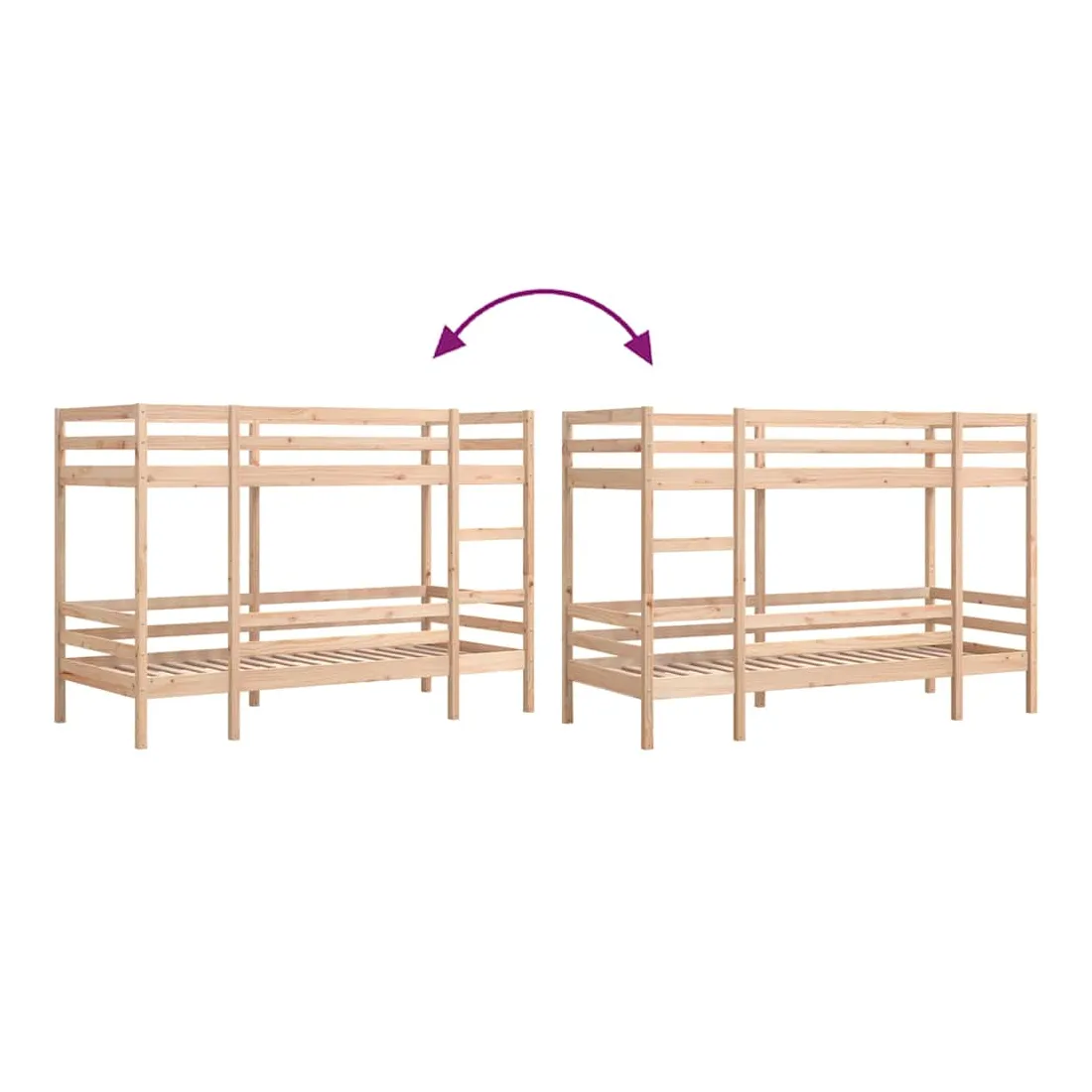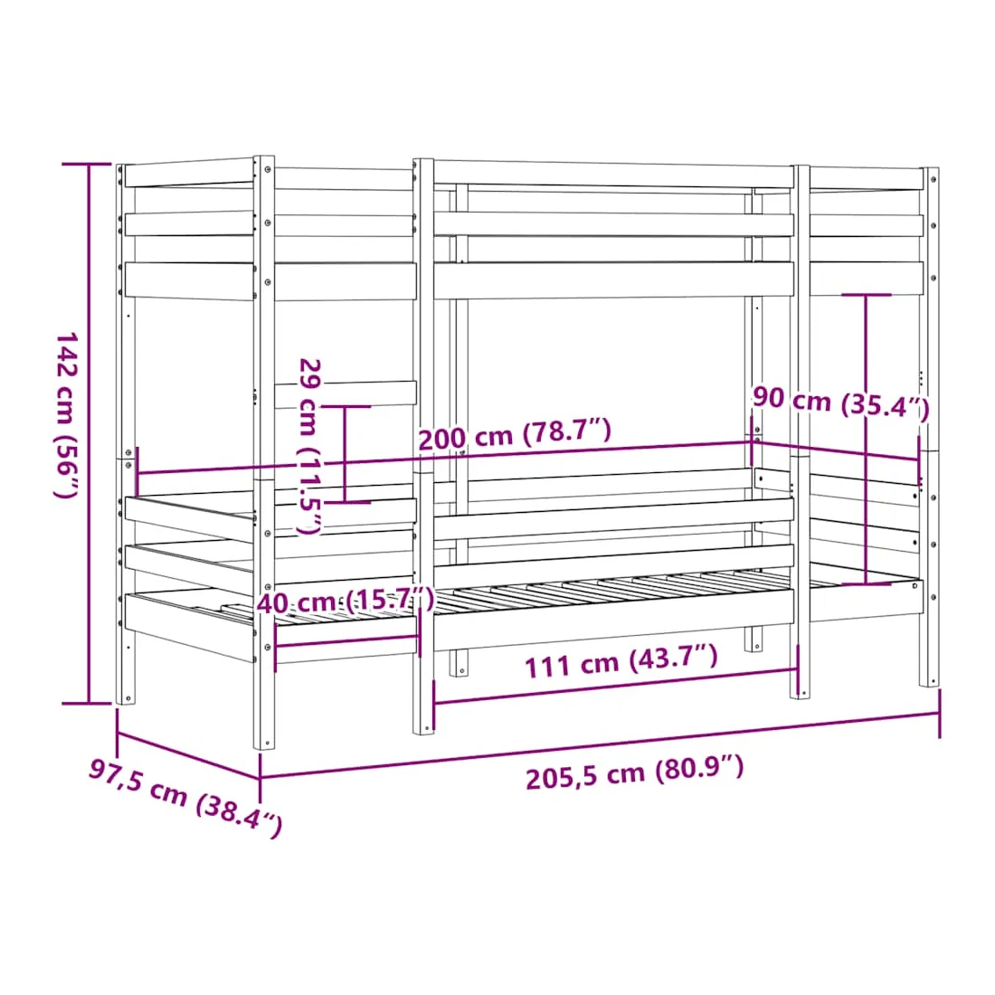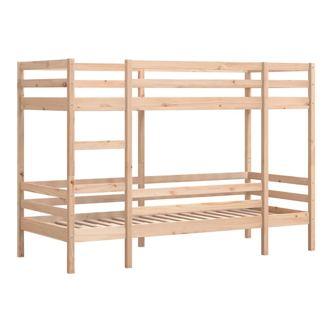 Ce lit superposé en bois est élégant et fonctionnel, ce qui en fait un supplément parfait à toute pièce dont l'espace est limité. Robuste et stable : le bois de pin massif est connu pour sa résistance et sa durabilité. Ses grains droits et ses nœuds distinctifs contribuent à son charme rustique.Design sûr : le lit surélevé est conçu dans un souci de sécurité. Il comprend des garde-corps qui empêchent l'utilisateur de rouler pendant son sommeil.Échelle pratique : l'échelle de ce lit superposé facilite et sécurise le sommeil à l'étage supérieur et offre une sécurité et une stabilité suffisantes.Convient aux espaces limités : le lit superposé en bois massif est un excellent choix pour toute pièce dont l'espace est limité. Il fournit deux lits individuels avec un design compact. Bon à savoir :La livraison comprend uniquement les cadres de lit. Les matelas ne sont pas inclus. Vous pouvez consulter notre boutique pour trouver les matelas assortis. Attention :Pour éviter qu'il ne bascule, ce produit doit être utilisé avec le dispositif de fixation murale fourni.