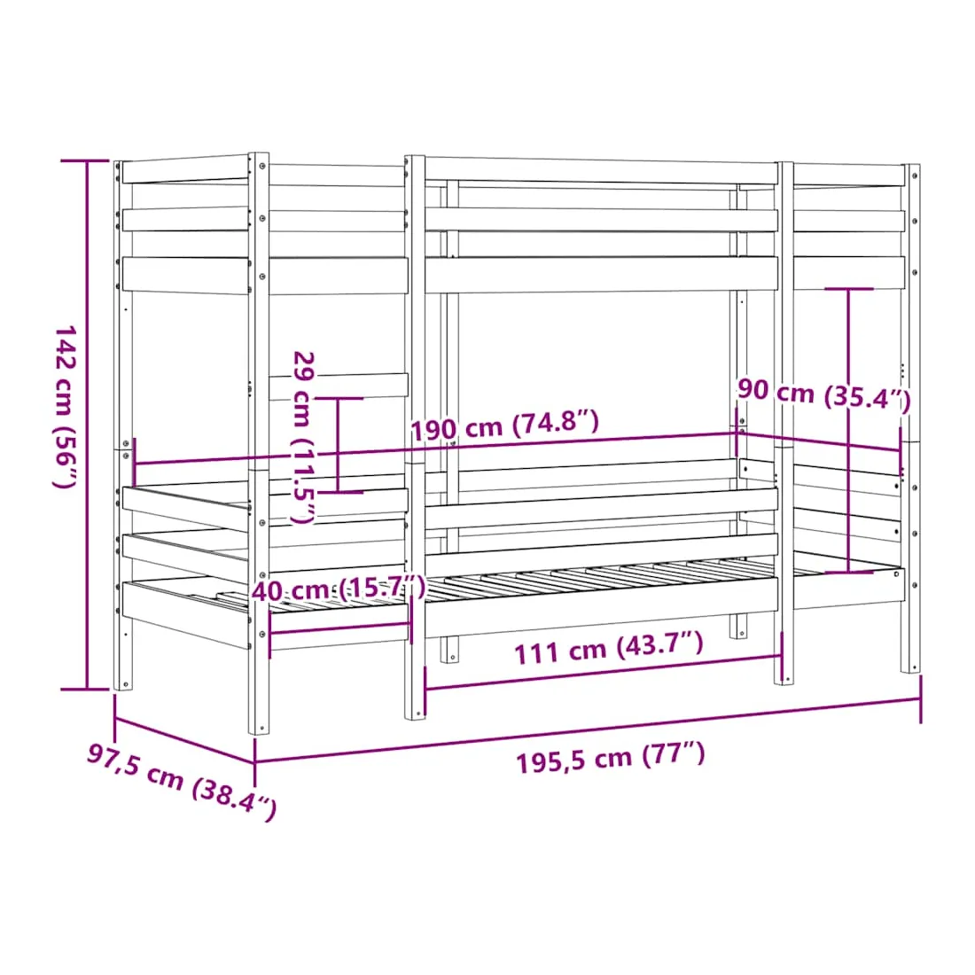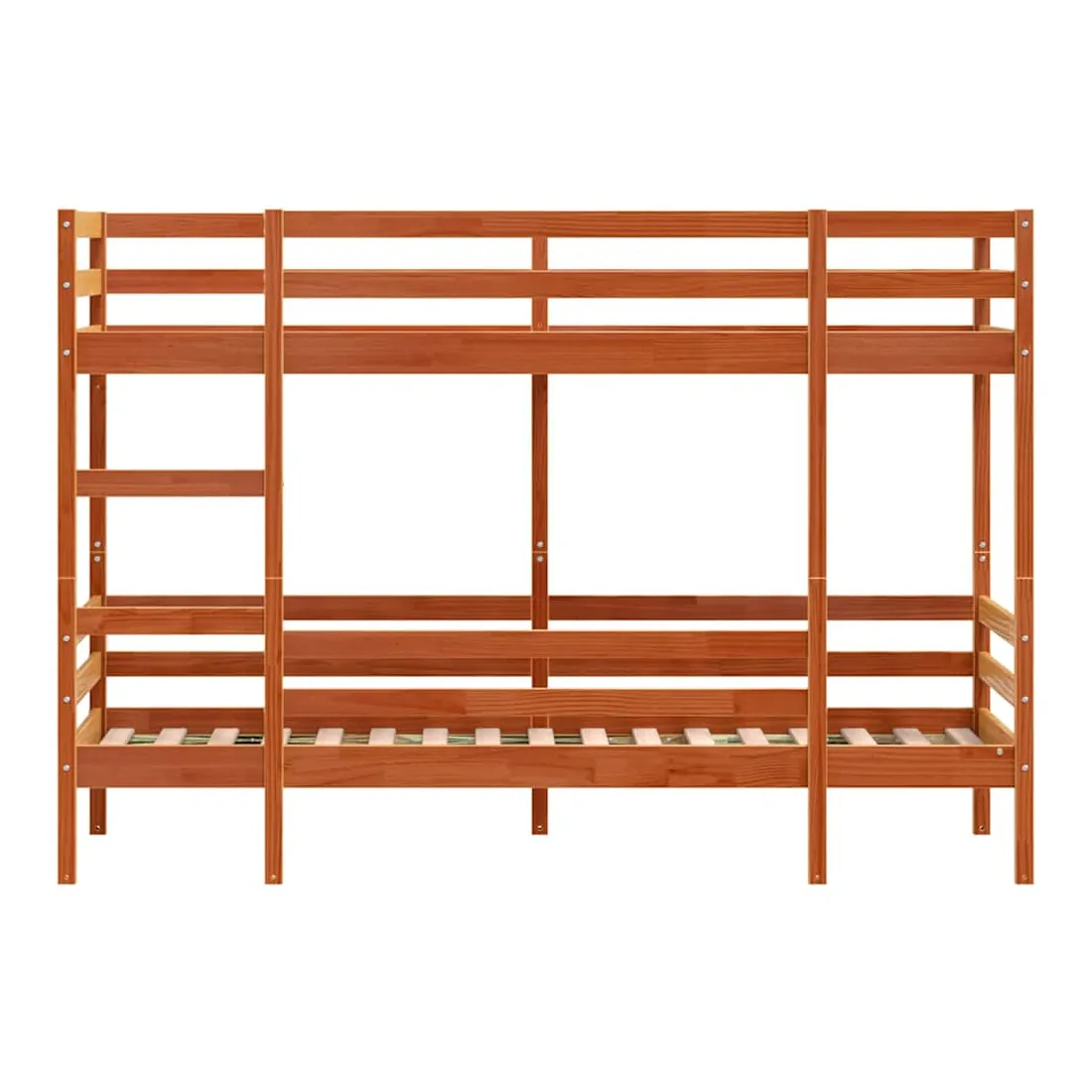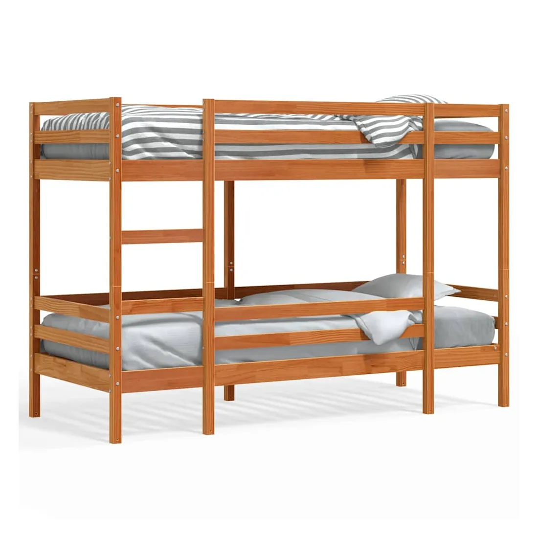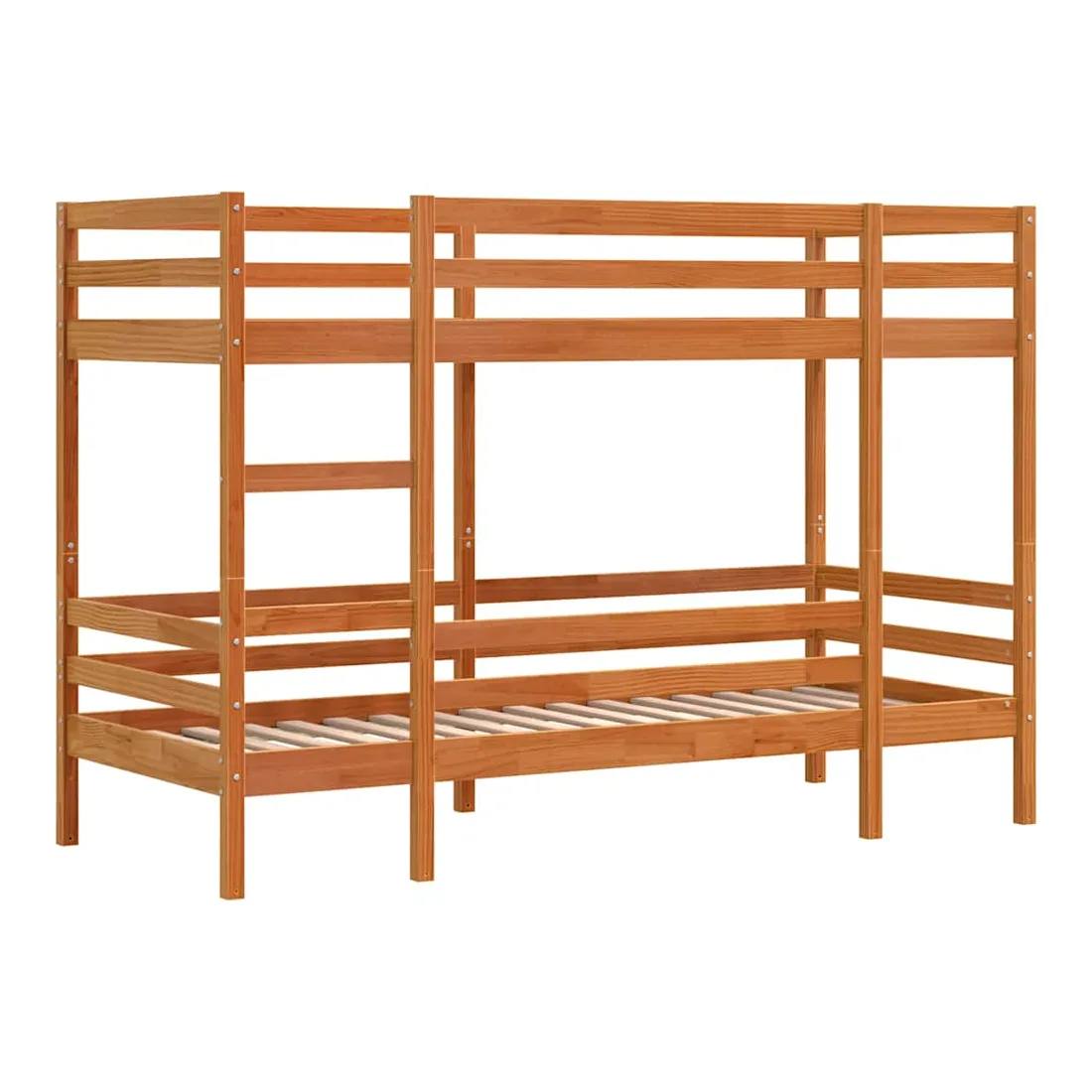 Ce lit superposé en bois est élégant et fonctionnel, ce qui en fait un supplément parfait à toute pièce dont l'espace est limité. Robuste et stable : le bois de pin massif est connu pour sa résistance et sa durabilité. Ses grains droits et ses nœuds distinctifs contribuent à son charme rustique.Design sûr : le lit surélevé est conçu dans un souci de sécurité. Il comprend des garde-corps qui empêchent l'utilisateur de rouler pendant son sommeil.Échelle pratique : l'échelle de ce lit superposé facilite et sécurise le sommeil à l'étage supérieur et offre une sécurité et une stabilité suffisantes.Convient aux espaces limités : le lit superposé en bois massif est un excellent choix pour toute pièce dont l'espace est limité. Il fournit deux lits individuels avec un design compact. Bon à savoir :La livraison comprend uniquement les cadres de lit. Les matelas ne sont pas inclus. Vous pouvez consulter notre boutique pour trouver les matelas assortis. Attention :Pour éviter qu'il ne bascule, ce produit doit être utilisé avec le dispositif de fixation murale fourni.