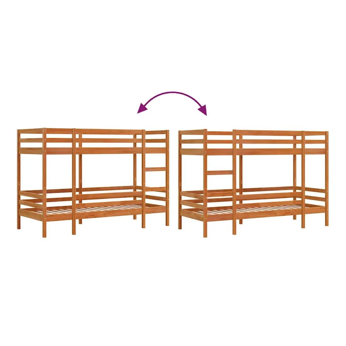 Ce lit superposé en bois est élégant et fonctionnel, ce qui en fait un supplément parfait à toute pièce dont l'espace est limité. Robuste et stable : le bois de pin massif est connu pour sa résistance et sa durabilité. Ses grains droits et ses nœuds distinctifs contribuent à son charme rustique.Design sûr : le lit surélevé est conçu dans un souci de sécurité. Il comprend des garde-corps qui empêchent l'utilisateur de rouler pendant son sommeil.Échelle pratique : l'échelle de ce lit superposé facilite et sécurise le sommeil à l'étage supérieur et offre une sécurité et une stabilité suffisantes.Convient aux espaces limités : le lit superposé en bois massif est un excellent choix pour toute pièce dont l'espace est limité. Il fournit deux lits individuels avec un design compact. Bon à savoir :La livraison comprend uniquement les cadres de lit. Les matelas ne sont pas inclus. Vous pouvez consulter notre boutique pour trouver les matelas assortis. Attention :Pour éviter qu'il ne bascule, ce produit doit être utilisé avec le dispositif de fixation murale fourni.